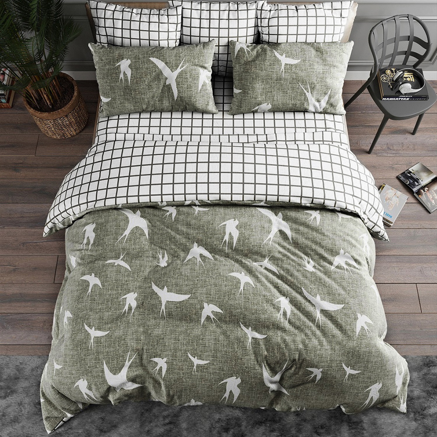 Постельное белье, комплект 1,5 спальный "Стрекозы, мятный", 4 предмета: пододеяльник 145х215см, простыня классическая 150х220см, 2 наволочки 70х70см с клапаном-запахом, бязь "Комфорт" 121г/м2, хлопок 100%, упаковка "классическая" ПВХ 32х41см, "Домашн