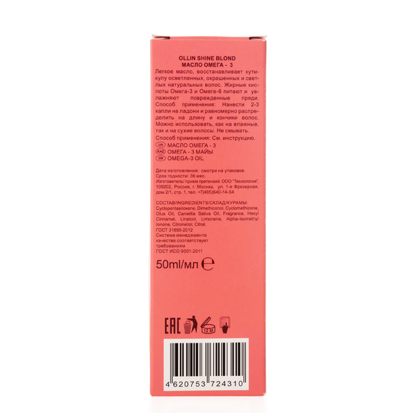 Оллин Професионал Масло ОМЕГА-3 50 мл (Ollin Professional, Уход за волосами) 4 фото