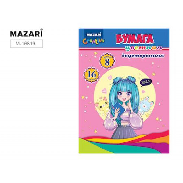 Набор цветной бумаги двусторонней А4 16л  8цв M-16819 Mazari