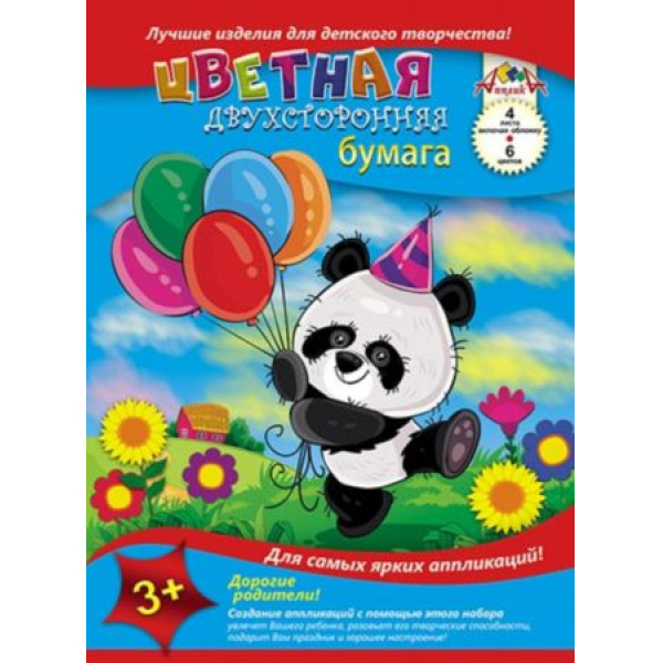 Набор цветной бумаги двусторонней А4  4л 6цв "Панда" С2786-01 АппликА