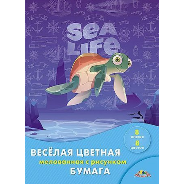Набор цветной бумаги мелованной двусторонней с рисунком А4  8л 8цв "Черепашка" С2804-06 АппликА