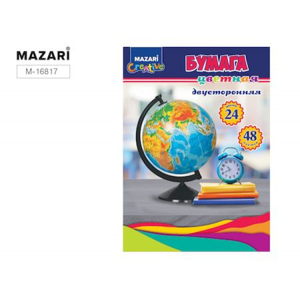 Набор цветной бумаги двусторонней А4 48л 24цв M-16817 Mazari