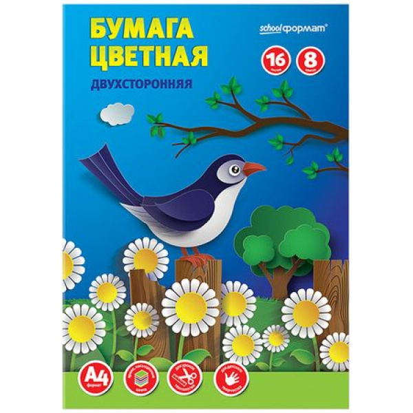 Набор цветной бумаги двусторонней А4 16л  8цв  БЦ2О16Л8Ц-ШК SchoolФормат
