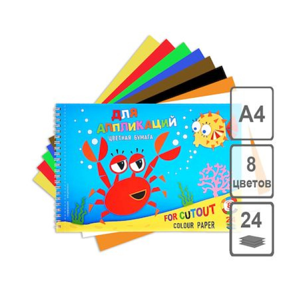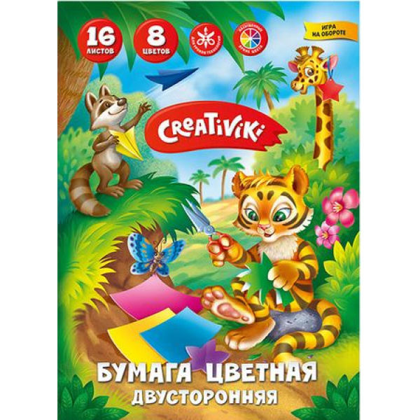 Набор цветной бумаги двусторонней А4 16л  8цв ЦБД16Л8ЦКР Creativiki