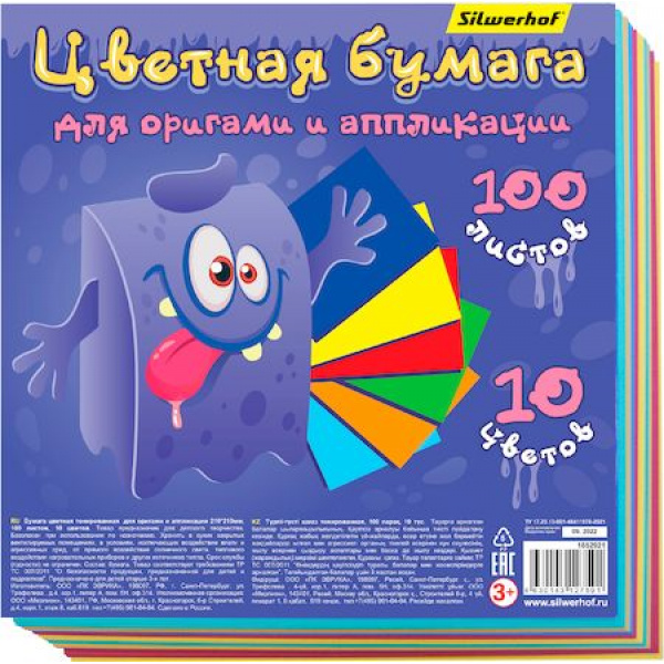 Набор цветной бумаги для оригами 210х210 мм 100л. 10цв. "Монстрики" 80г/м2 (1852921) SILWERHOF