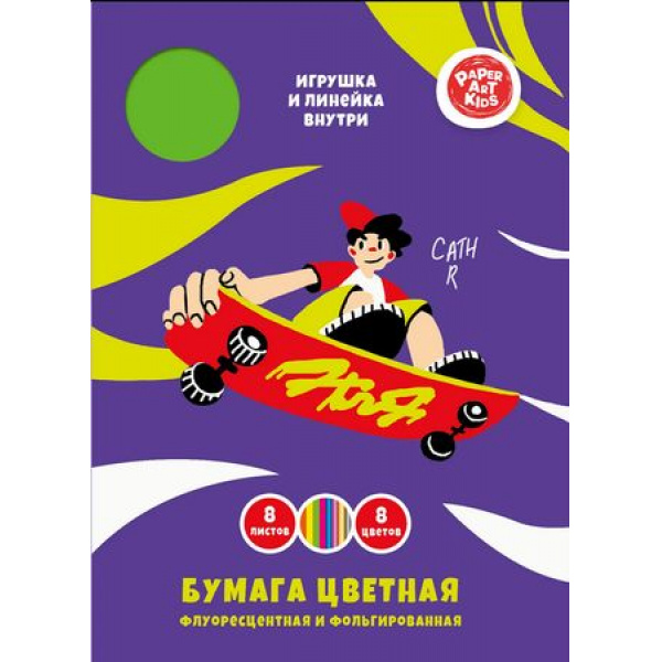 Набор цветной бумаги флуоресцентной и фольгированной 205х290 мм 8л 8цв "Скейтбординг" в папке ЦБФФ88401 Эксмо