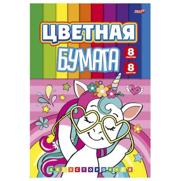 Набор цветной бумаги двусторонней 166х240 мм 8л 8цв "МЕЧТАТЕЛЬНЫЙ ЕДИНОРОГ" 08-9318 Проф-Пресс