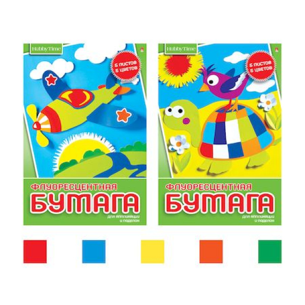 Набор цветной бумаги флуорисцентной А4 5л 5цв "Хобби Тайм" 2 вида 11-405-245 Альт