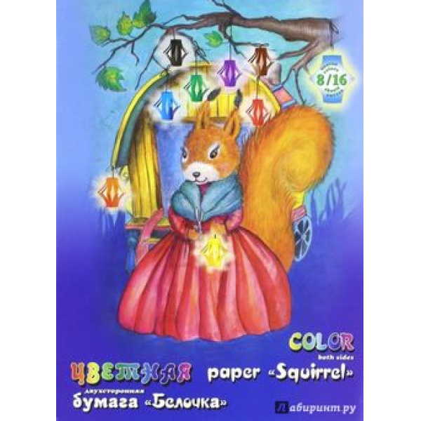 Набор цветной бумаги двусторонней А4 16л  8цв "Белочка" ЦБ-0243 Лилия Холдинг