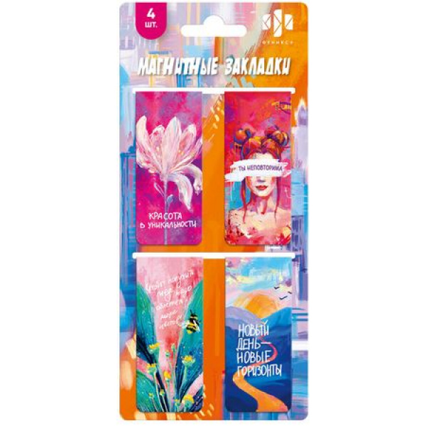 Набор магнитных закладок 25х58 мм 4 шт. НЕЖНОСТЬ 65056 Феникс