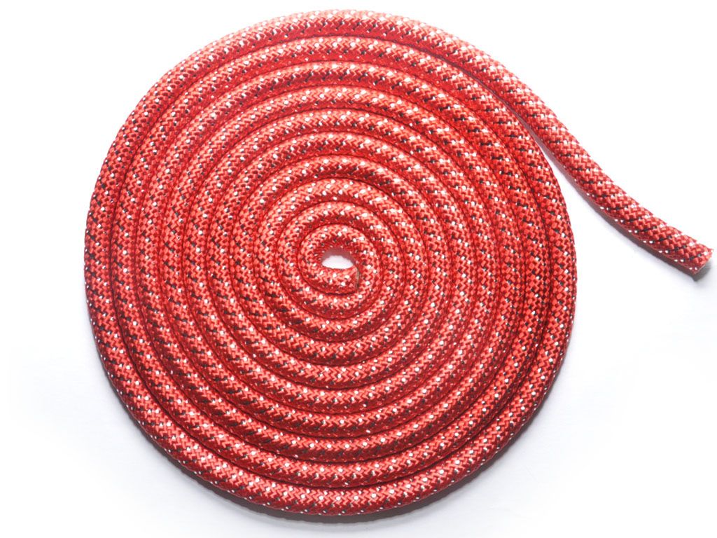 Скакалка для художественной гимнастики с люрексом. Материал: полиамид. Длина 3 м.  Количество прядей - 40. Цвет: красный с серебром. TS-KC