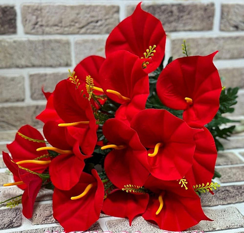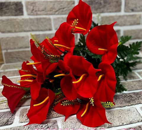 Цветы искусственные декоративные Букет каллы (7 цветков + зелень) 62 см 3 фото