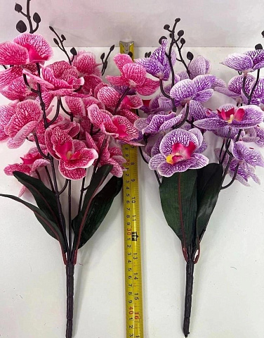 Цветы искусственные декоративные Букет орхидей (5 веток 20 цветков) крупные листья + побеги 42 см 3 фото