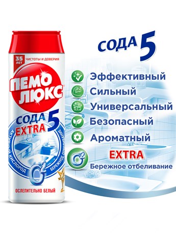 Средство чистящее Пемолюкс Ослепительно белый порошок, 480г 3 фото