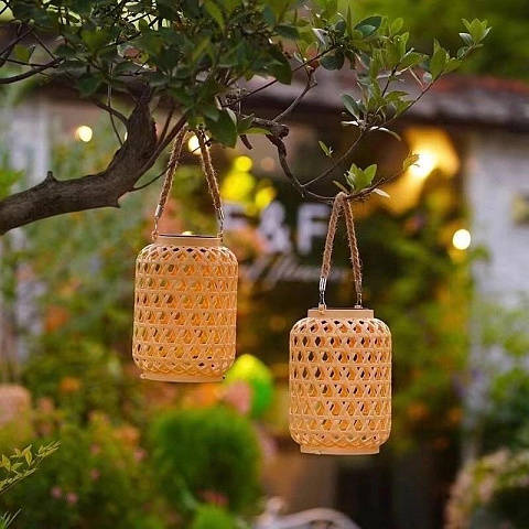Светильник - Шар подвесной на солнечной батарее, желтый цвет 3 фото