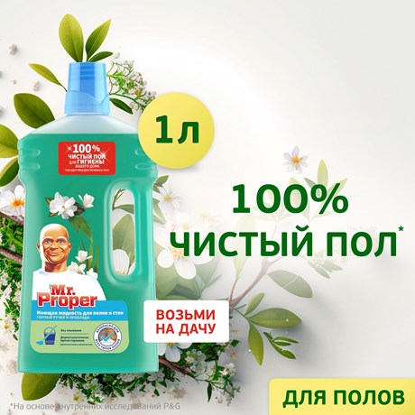Средство моющее для полов и стен Mr. Proper Горный ручей и прохлада, 1л 2 фото