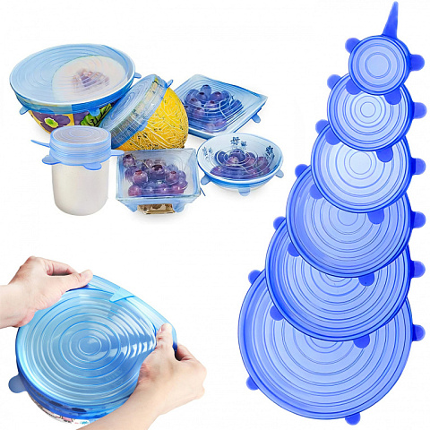 Силиконовые растягивающиеся крышки для посуды 6 шт 4 фото