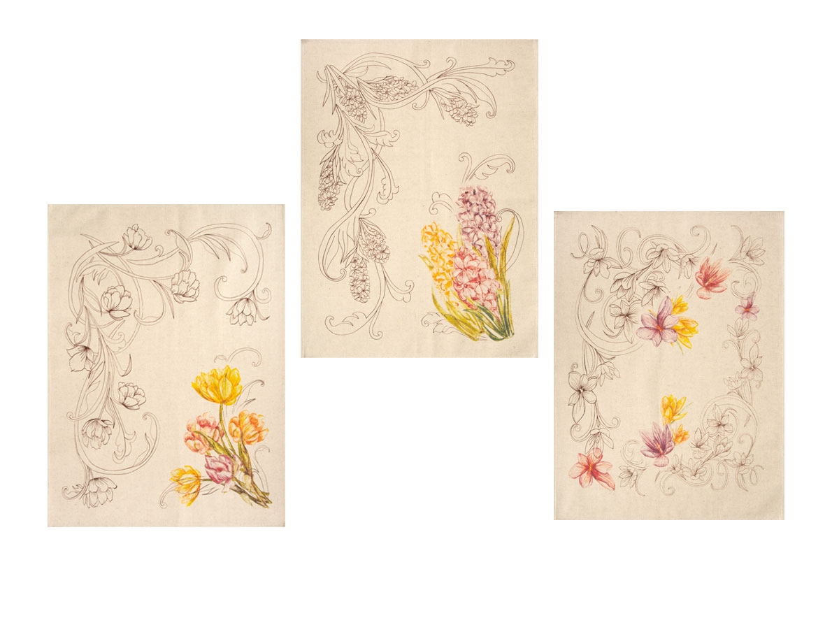 22С145-ШР+К/п.р/фкор Комплект полотенец из 3 шт. 45*60 "Первоцветы-3" рис. 420 7 фото