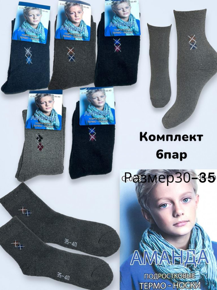 Носки для мальчиков термо Махровые плотные 6 пар 35-40 Арт10 4 фото
