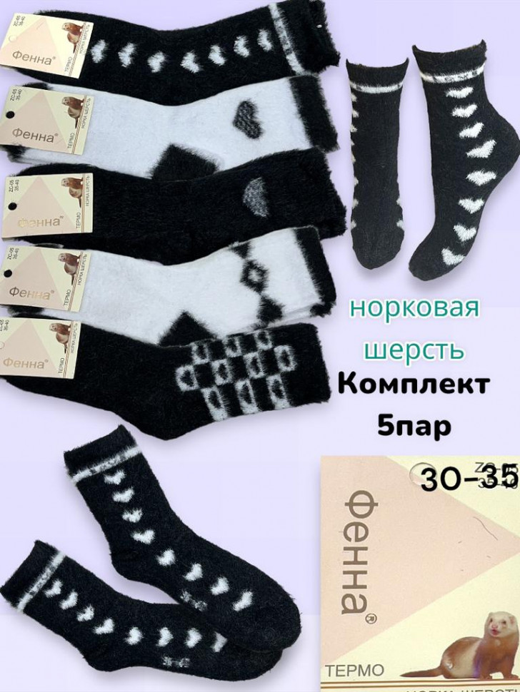 Носки для девочек термо норковая шерсть 30-35 5 пар Арт7 4 фото