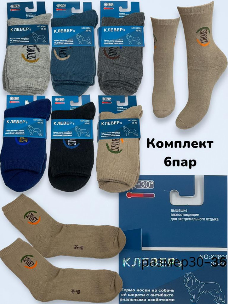 Носки для мальчиков термо собачья шерсть 6 пар 35-40 Арт13 4 фото