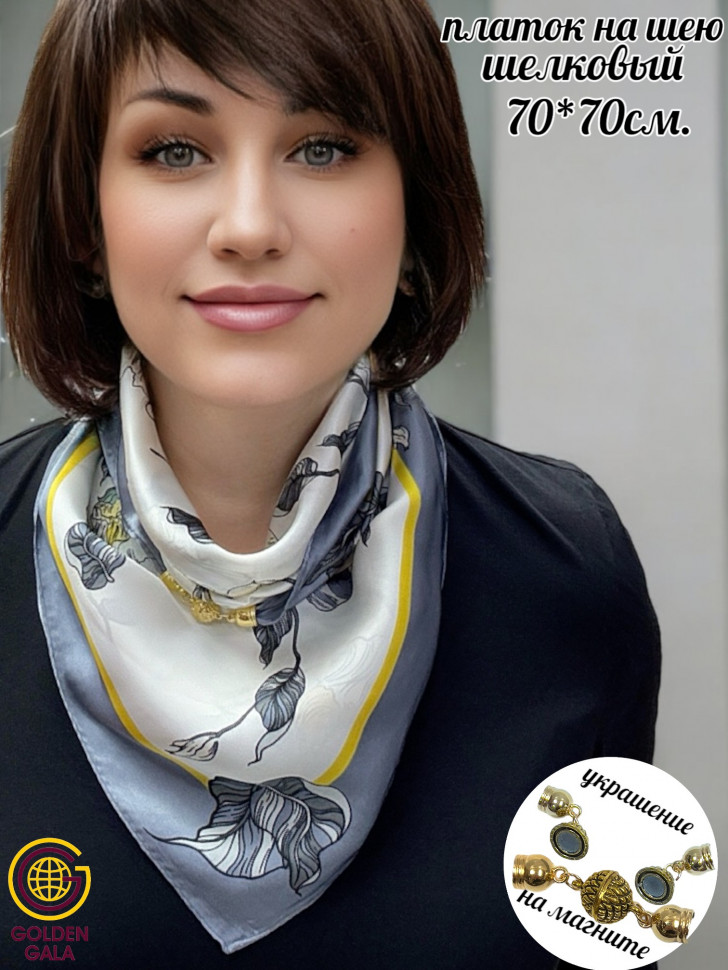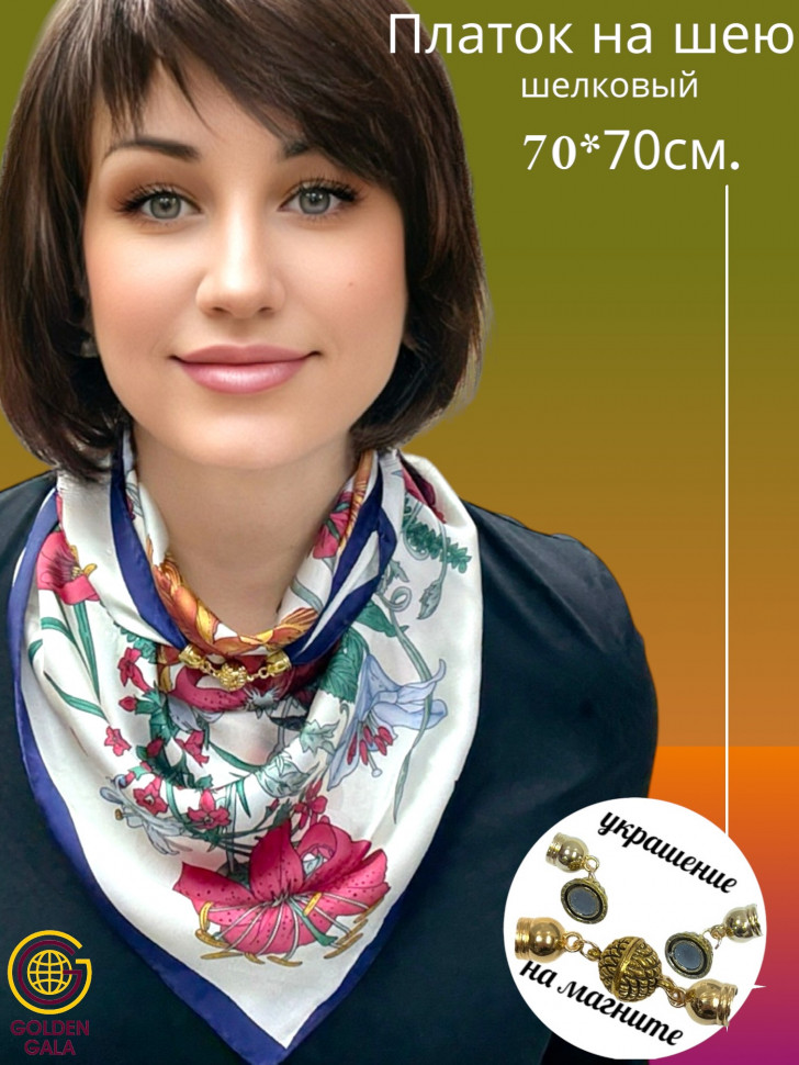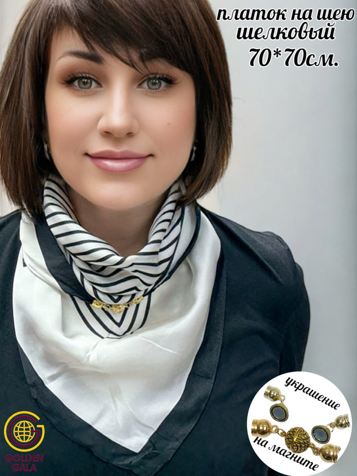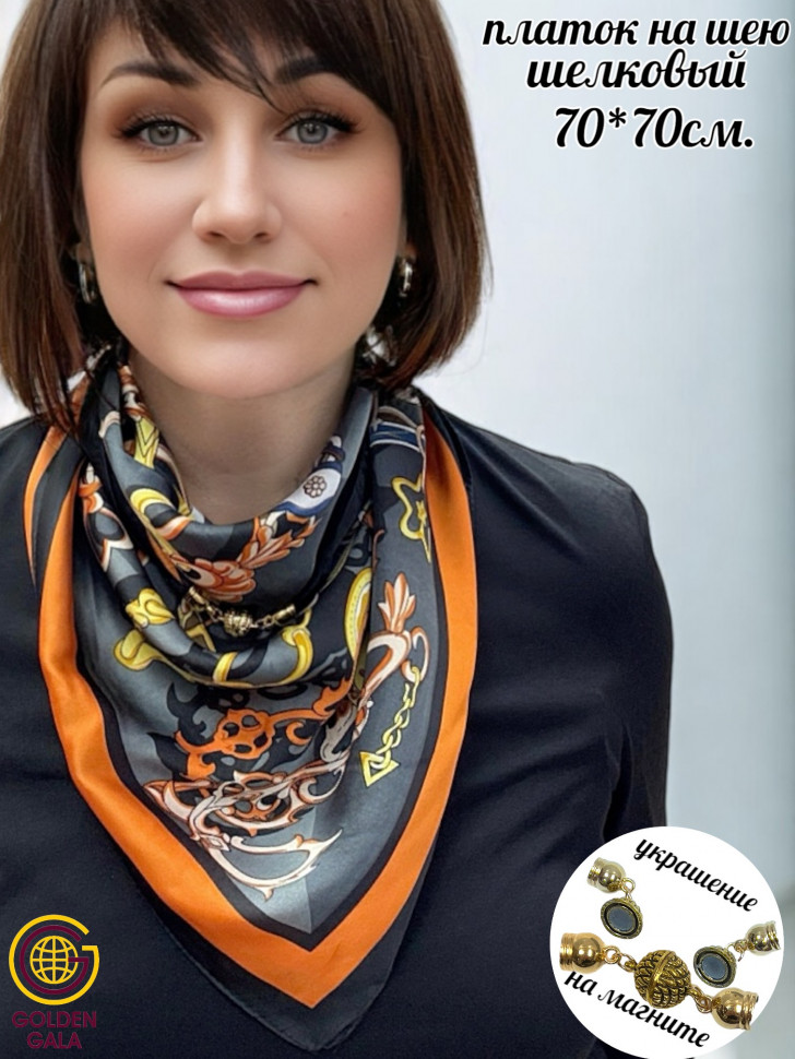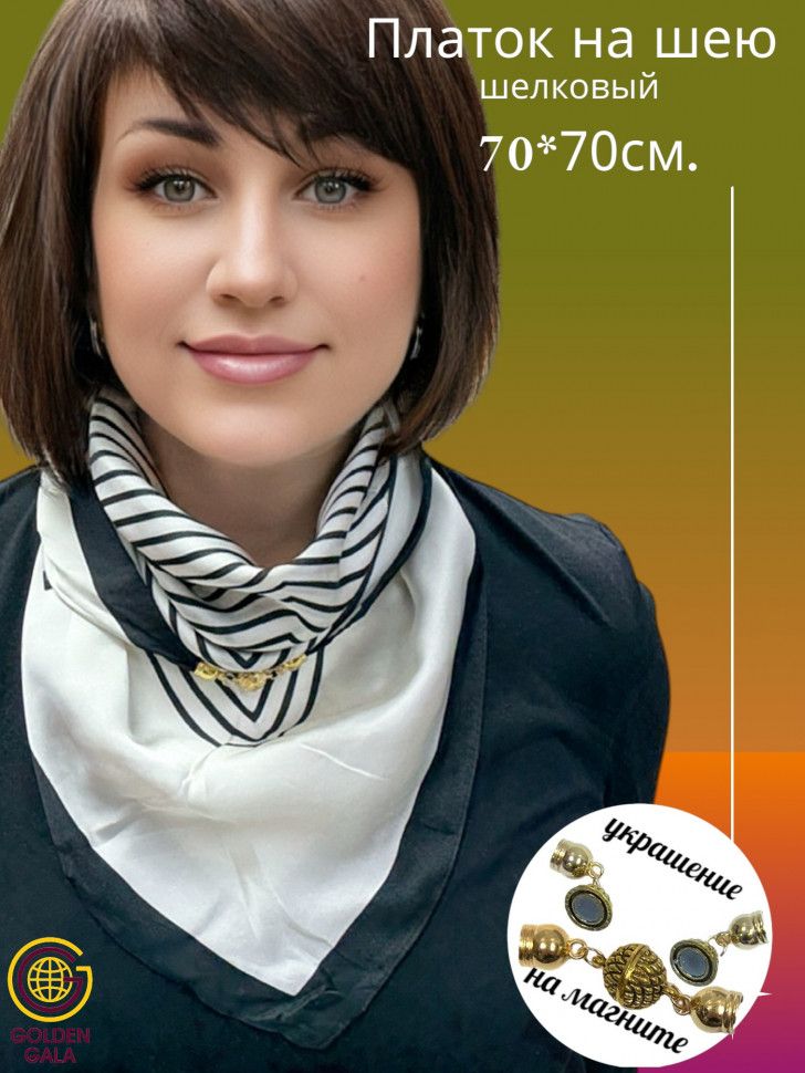 Платок на шею с украшением шелковый Арт 2530/01 10 фото