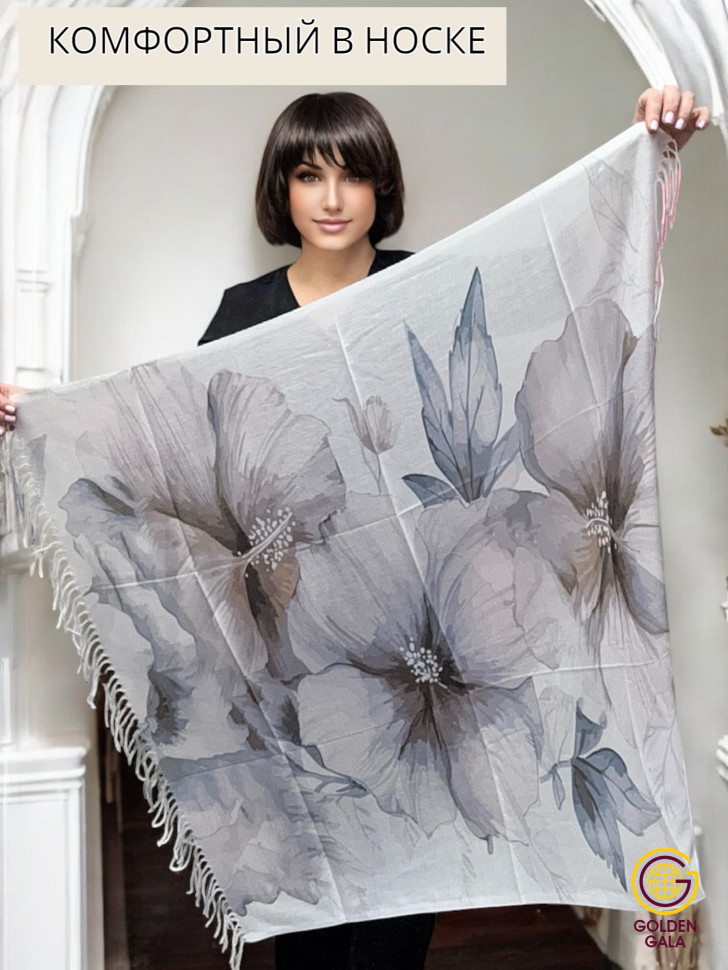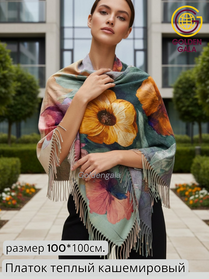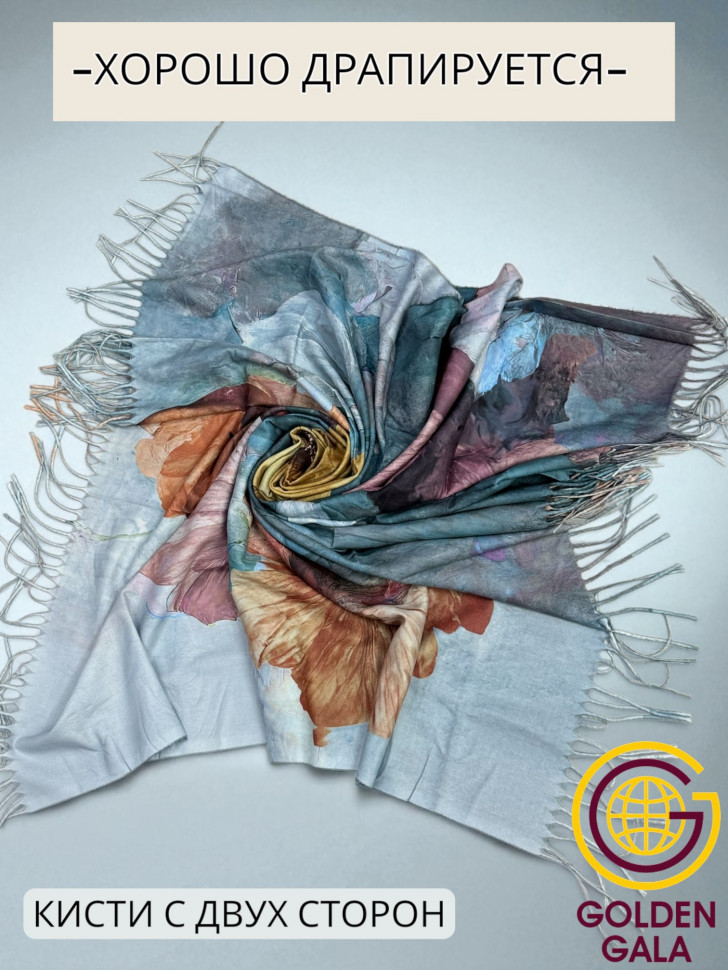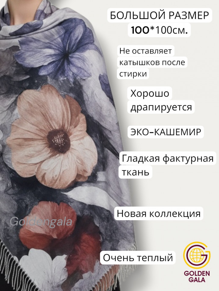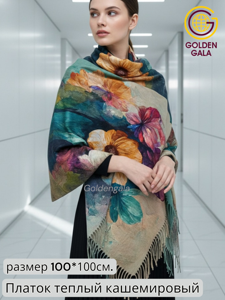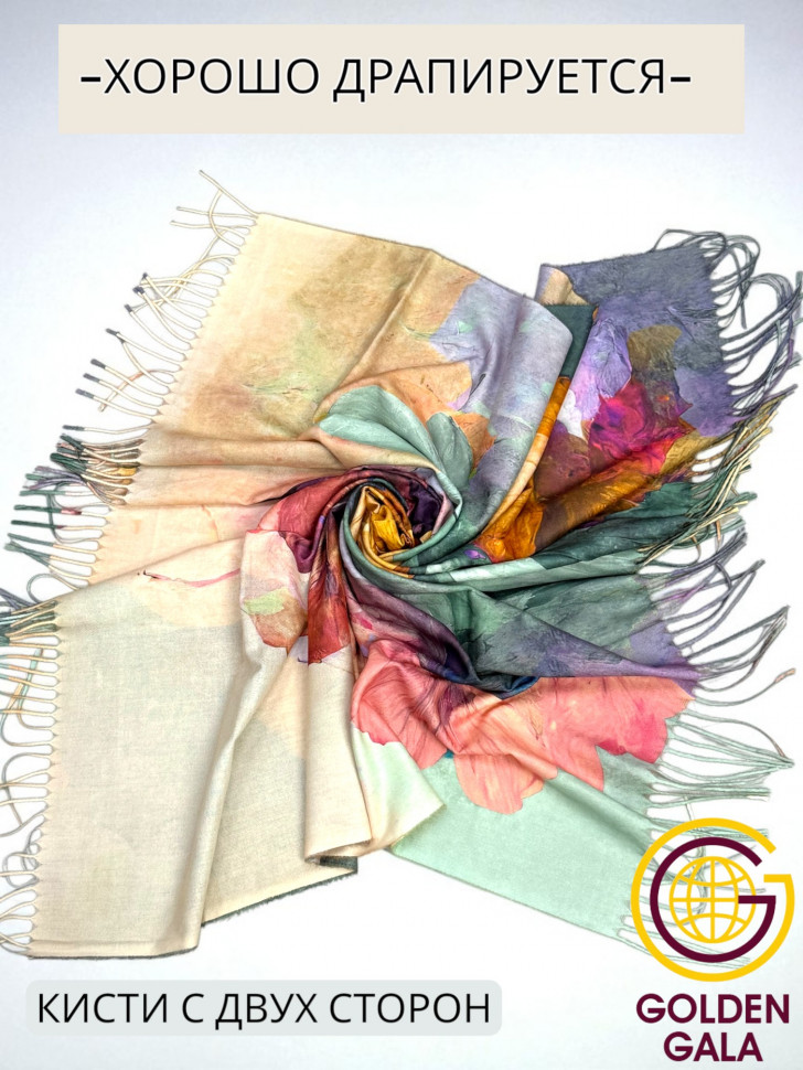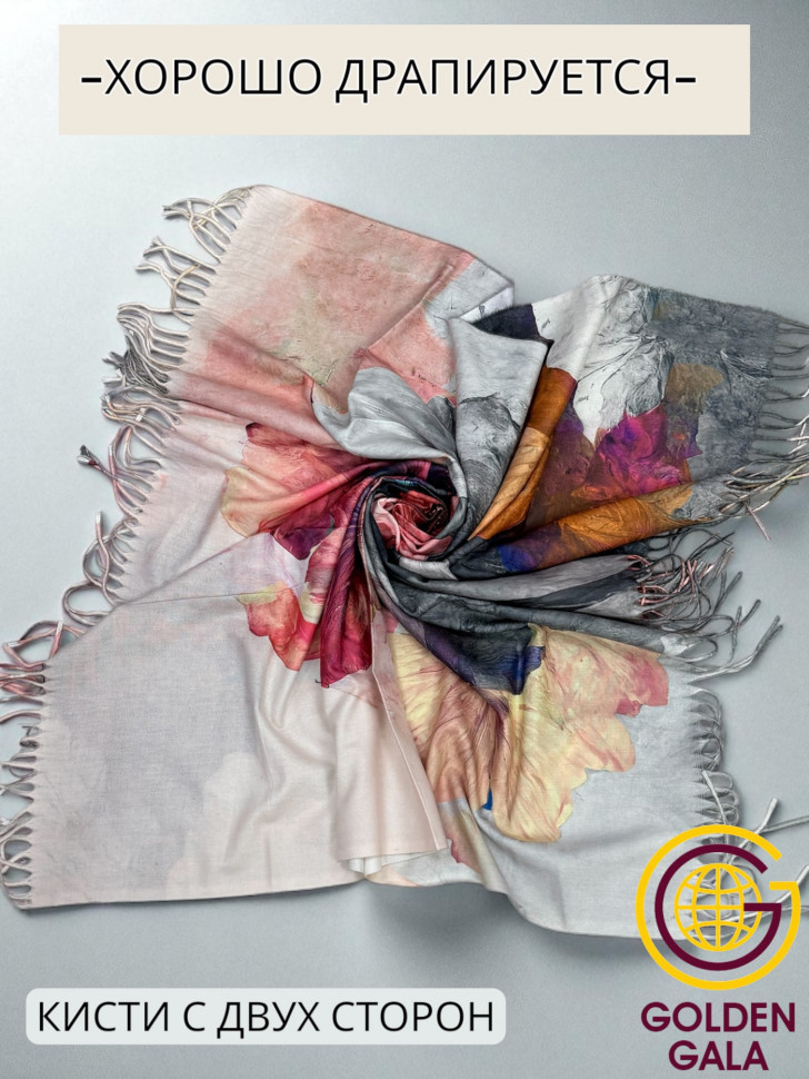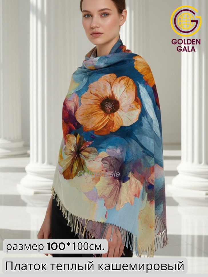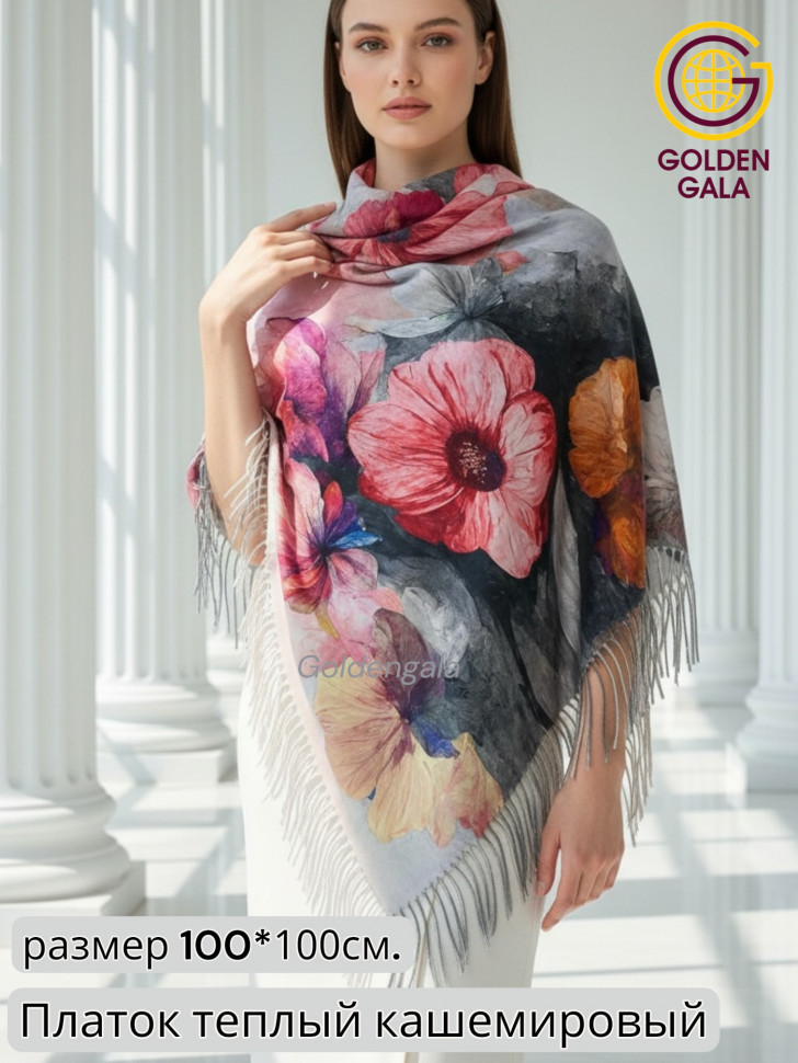 Платок теплый кашемировый с 3D принтом Арт 2591П/10 10 фото