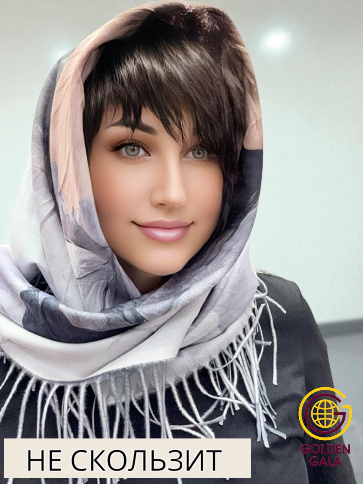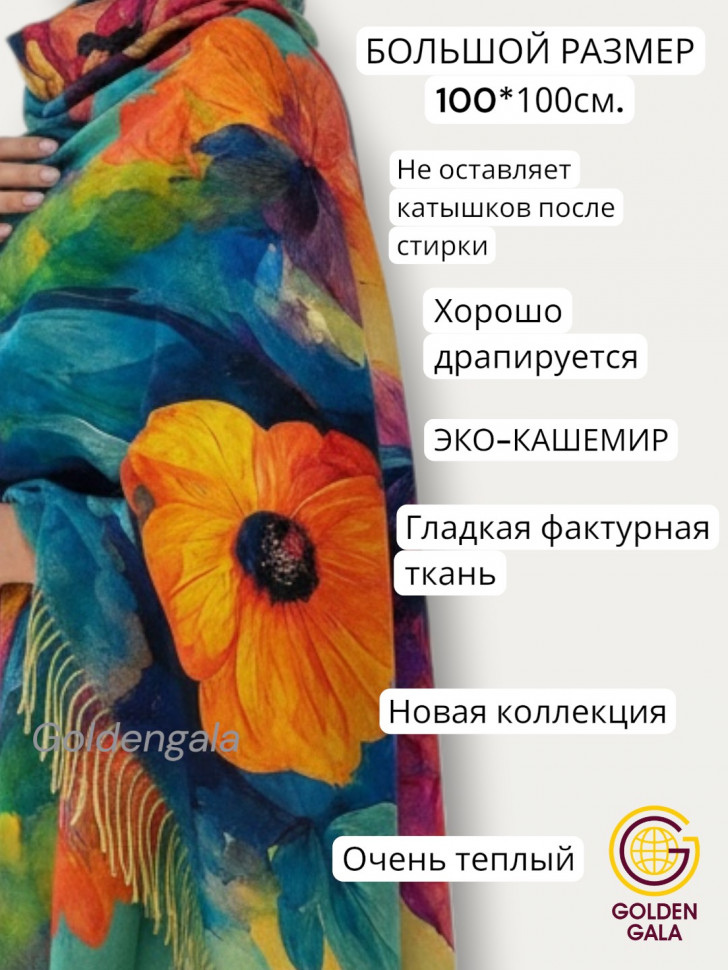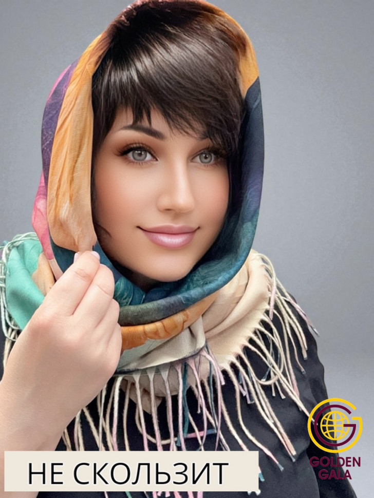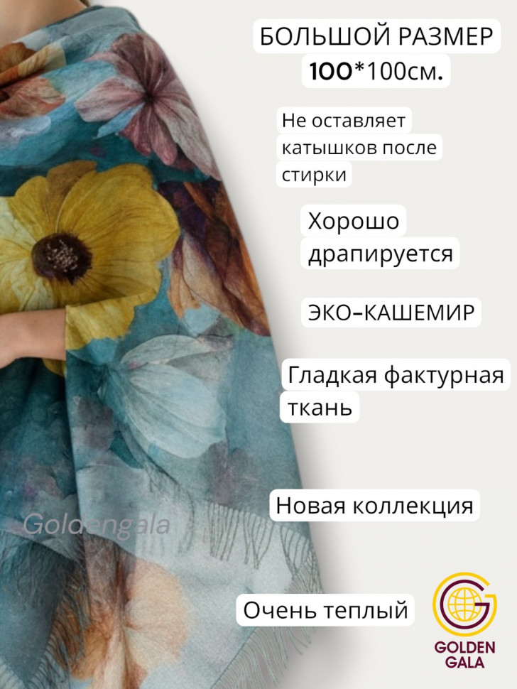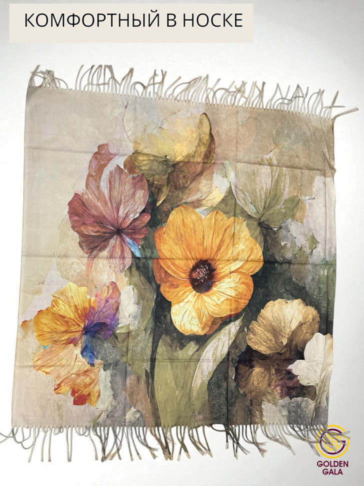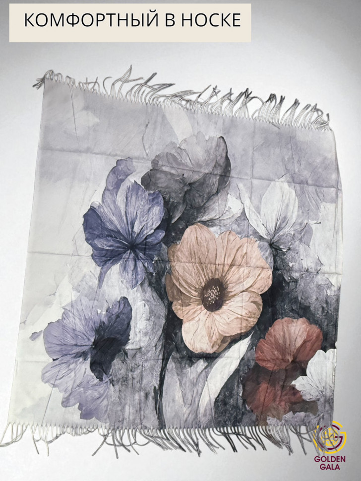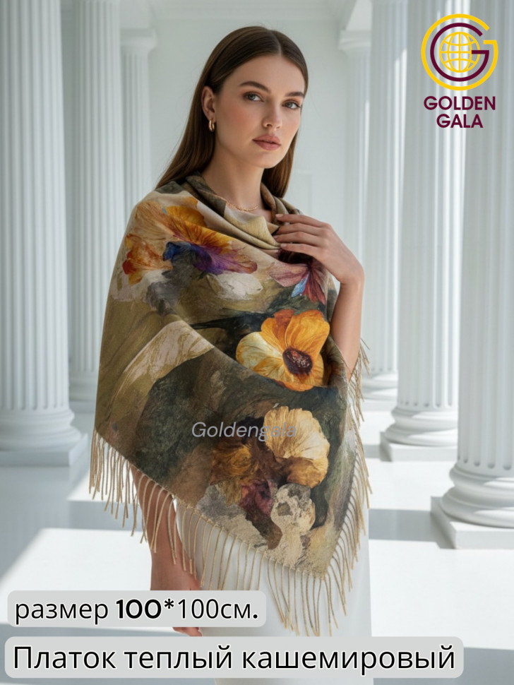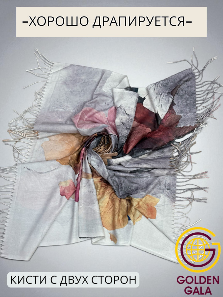 Платок теплый кашемировый с 3D принтом Арт 2591П/10 10 фото
