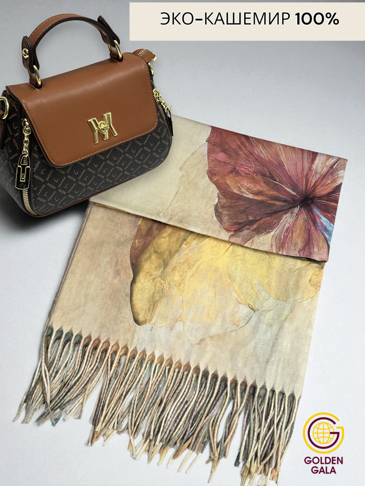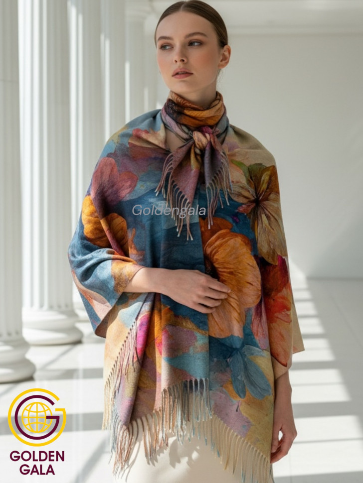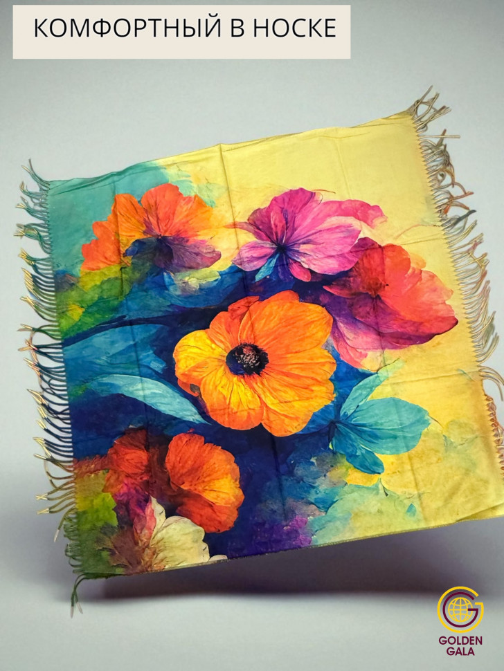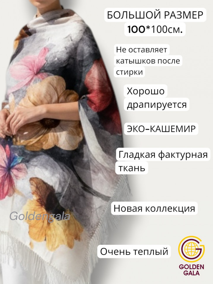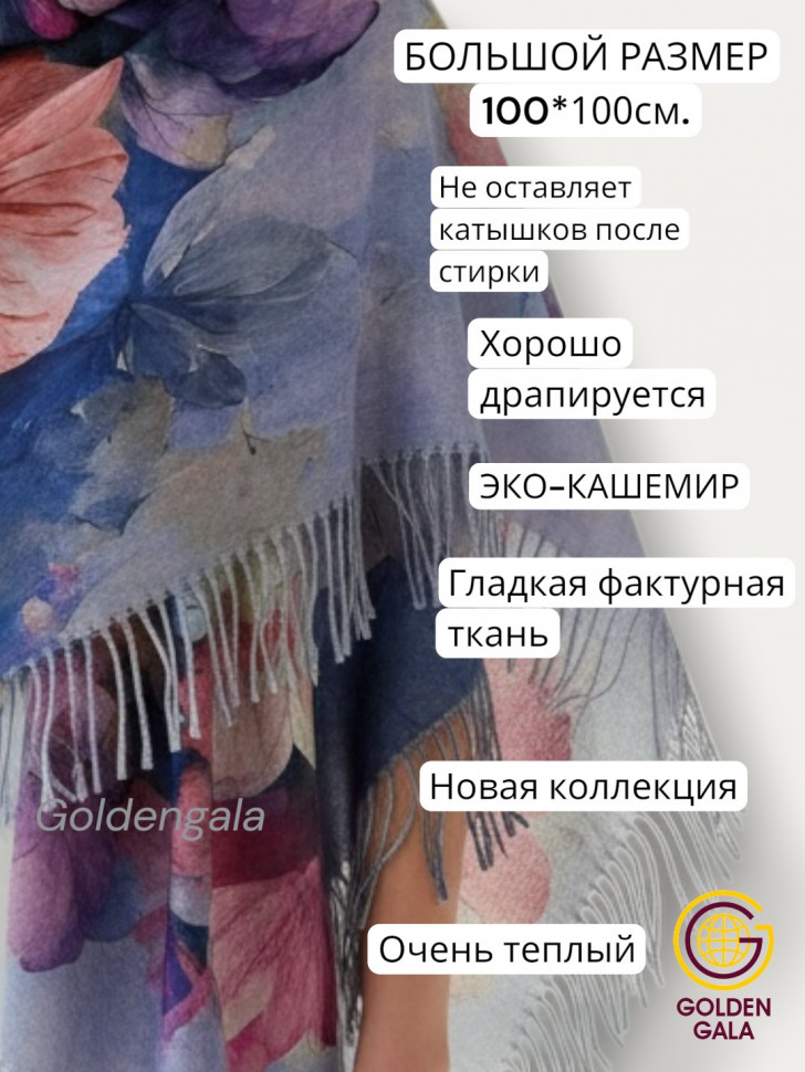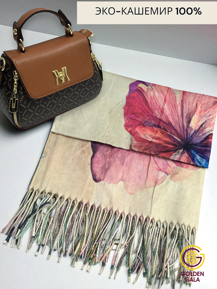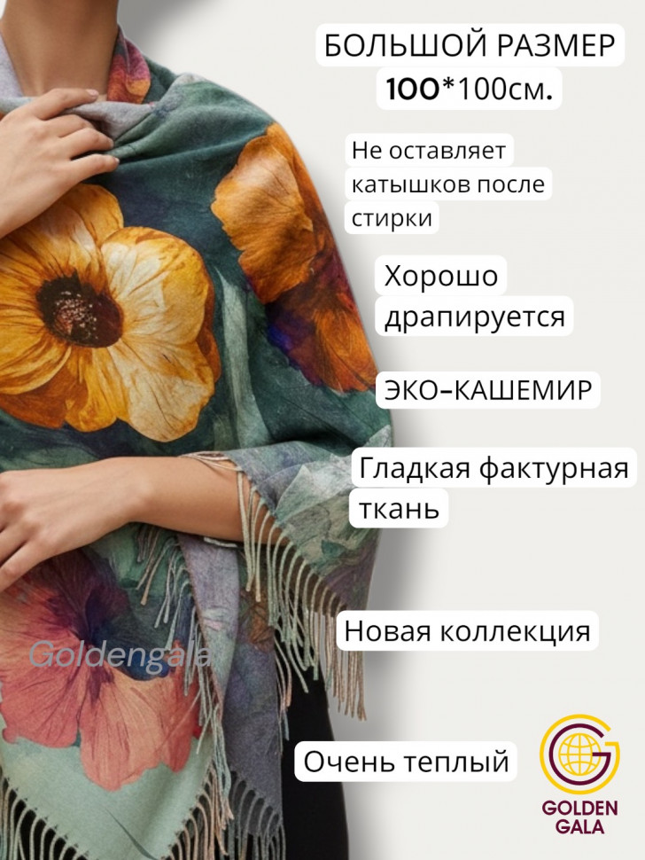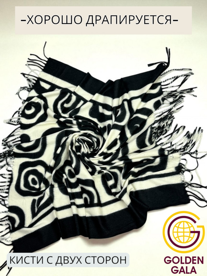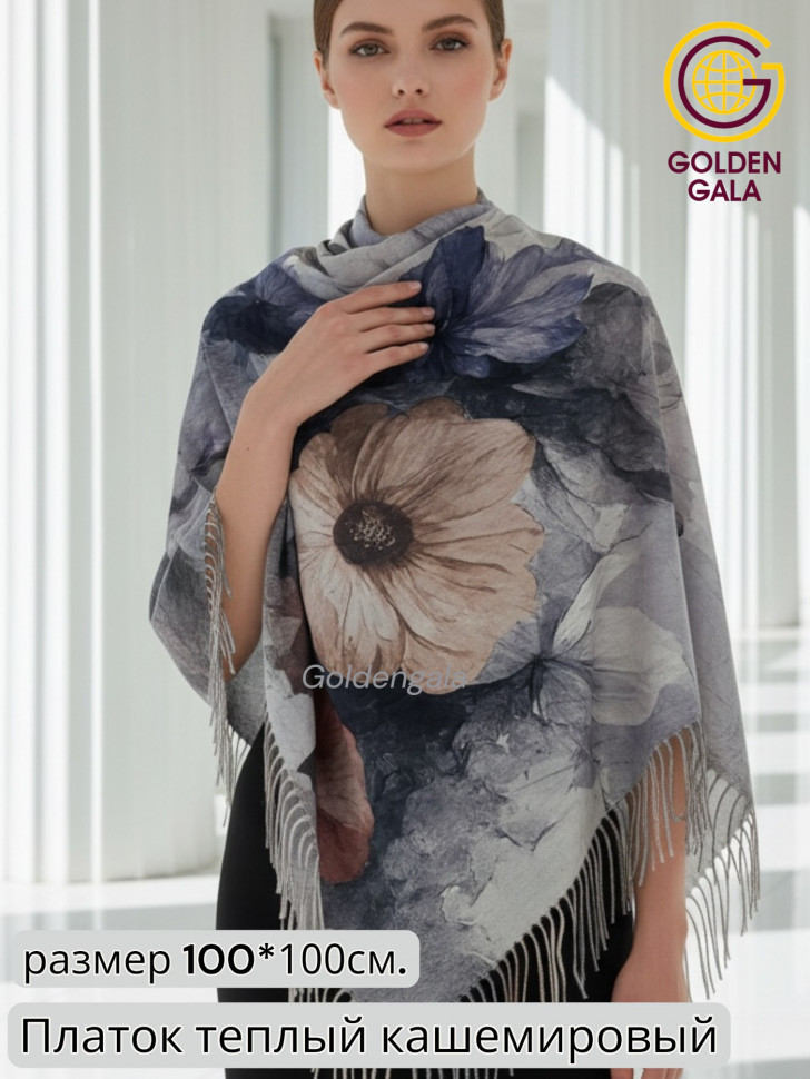 Платок теплый кашемировый с 3D принтом Арт 2591П/10 10 фото