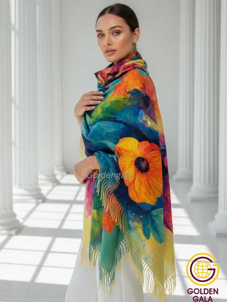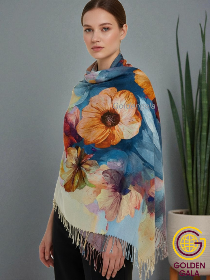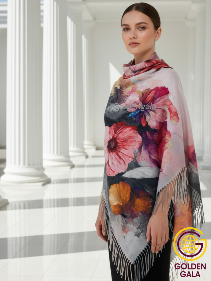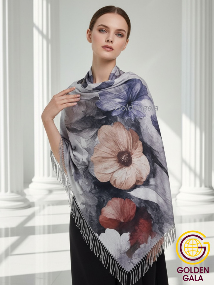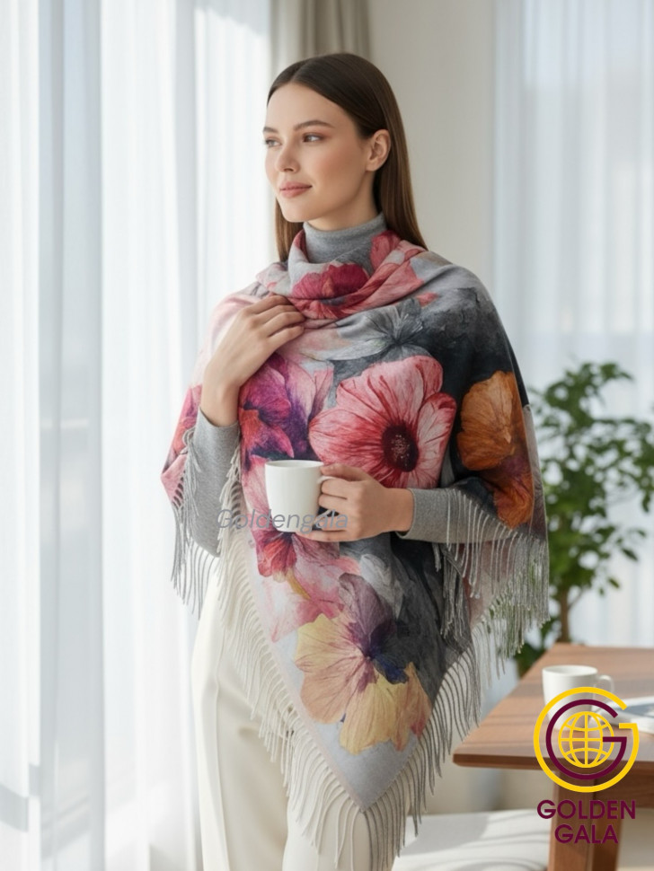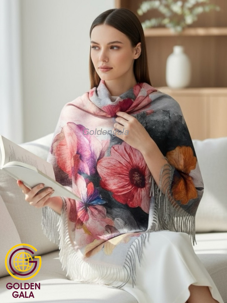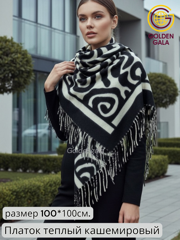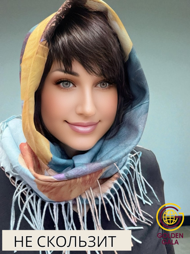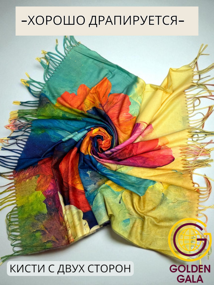 Платок теплый кашемировый с 3D принтом Арт 2591П/10 10 фото