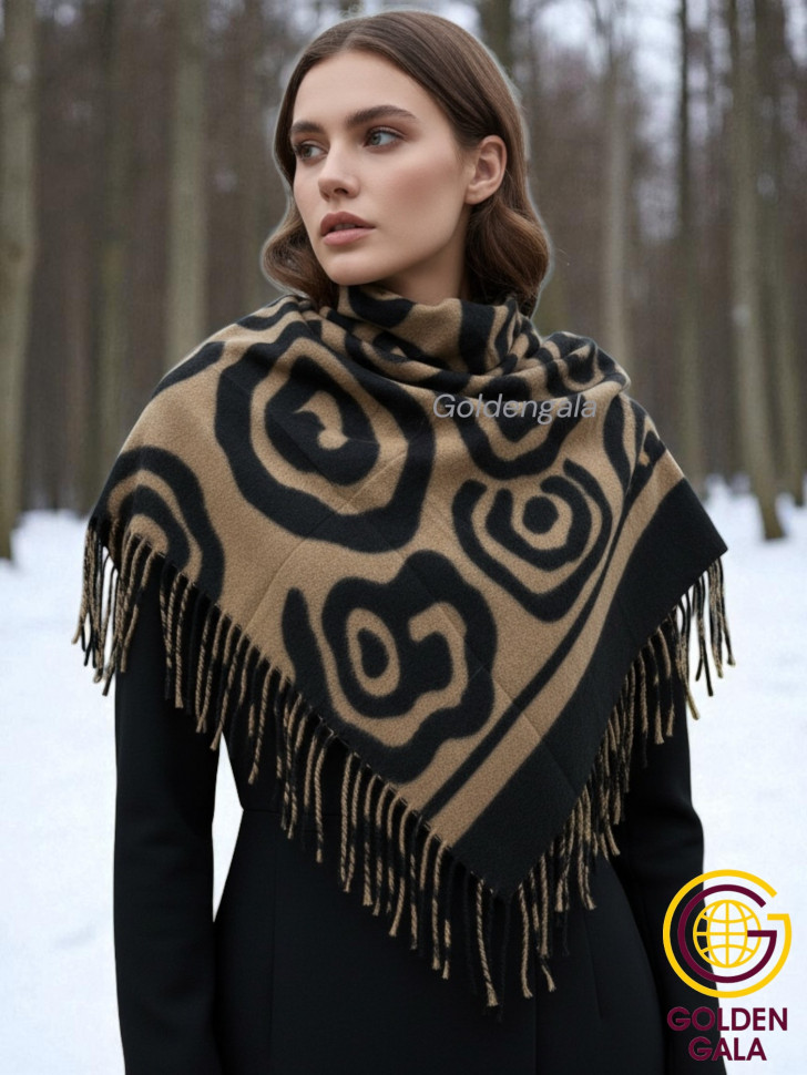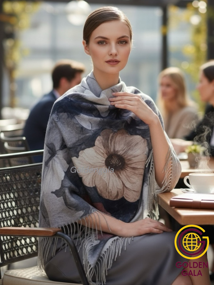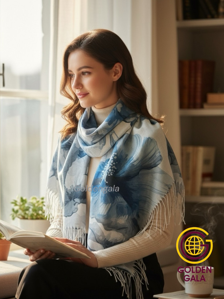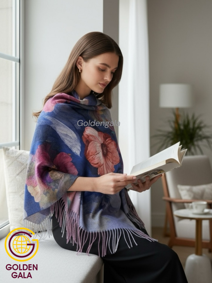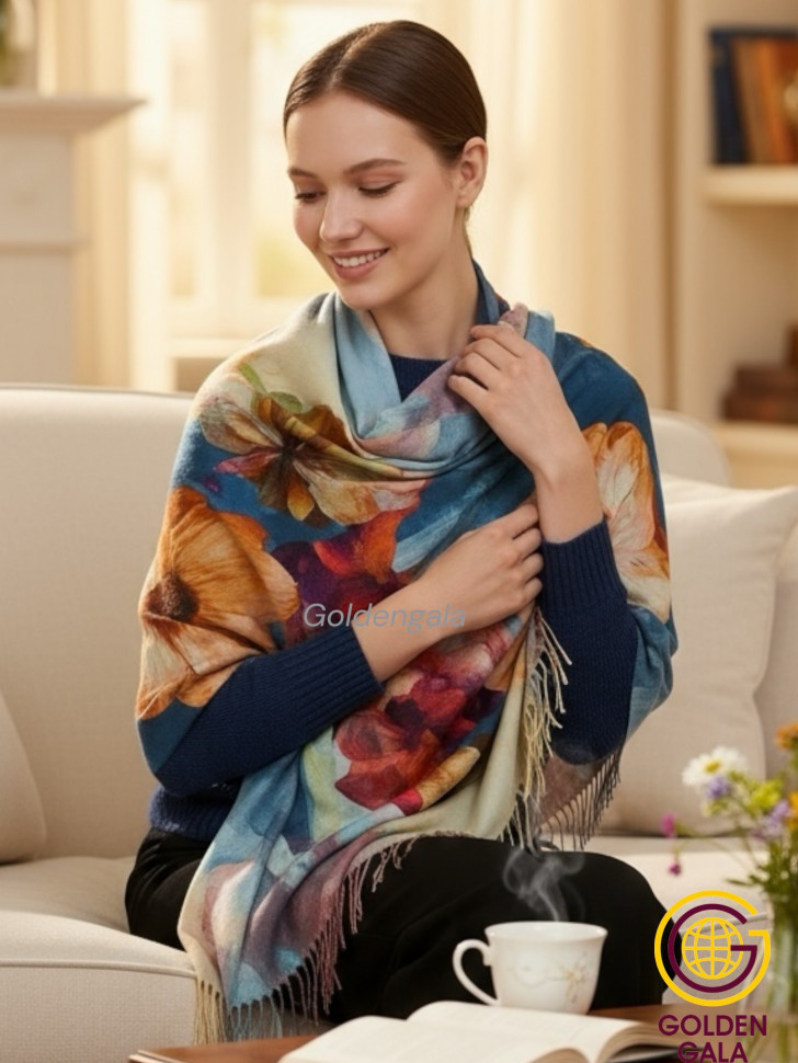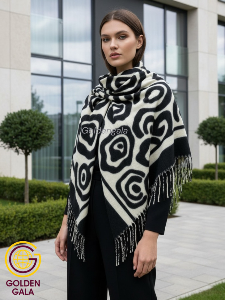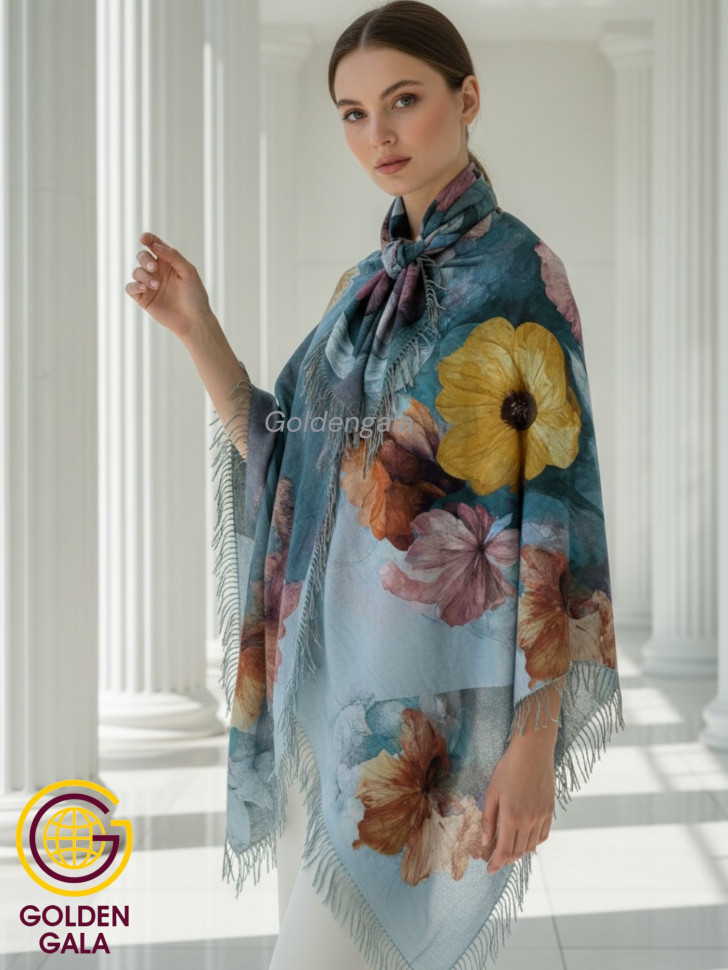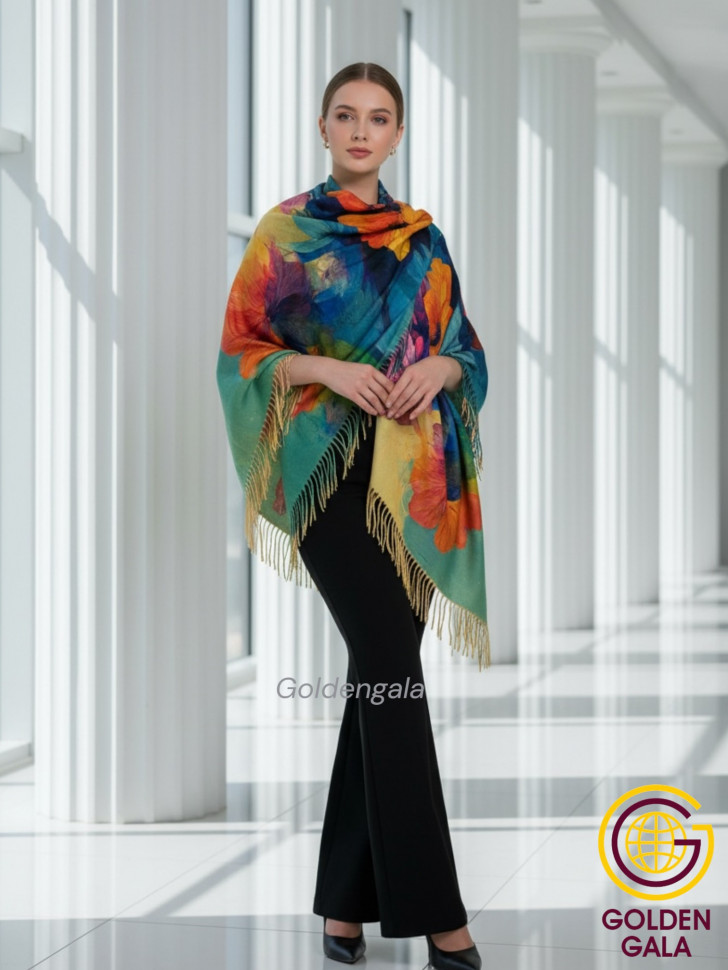 Платок теплый кашемировый с 3D принтом Арт 2591П/10 10 фото