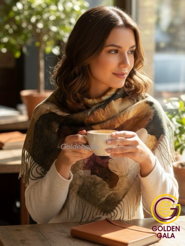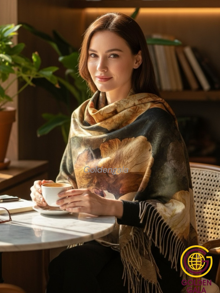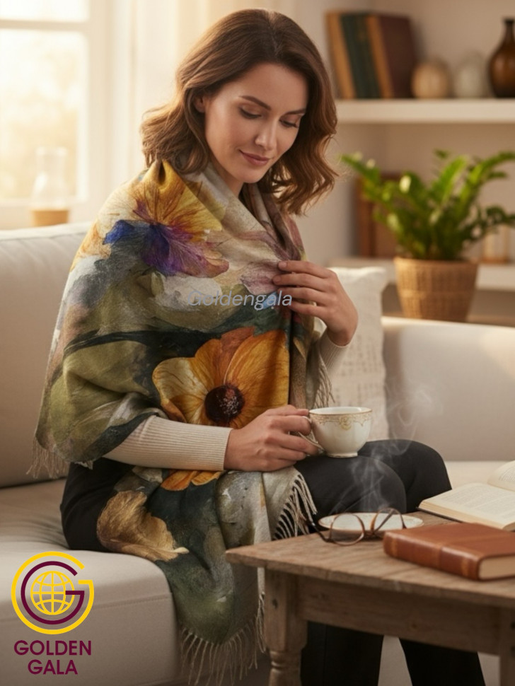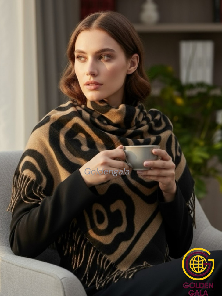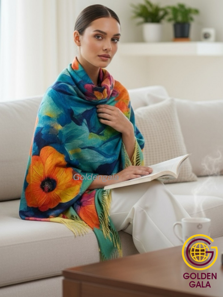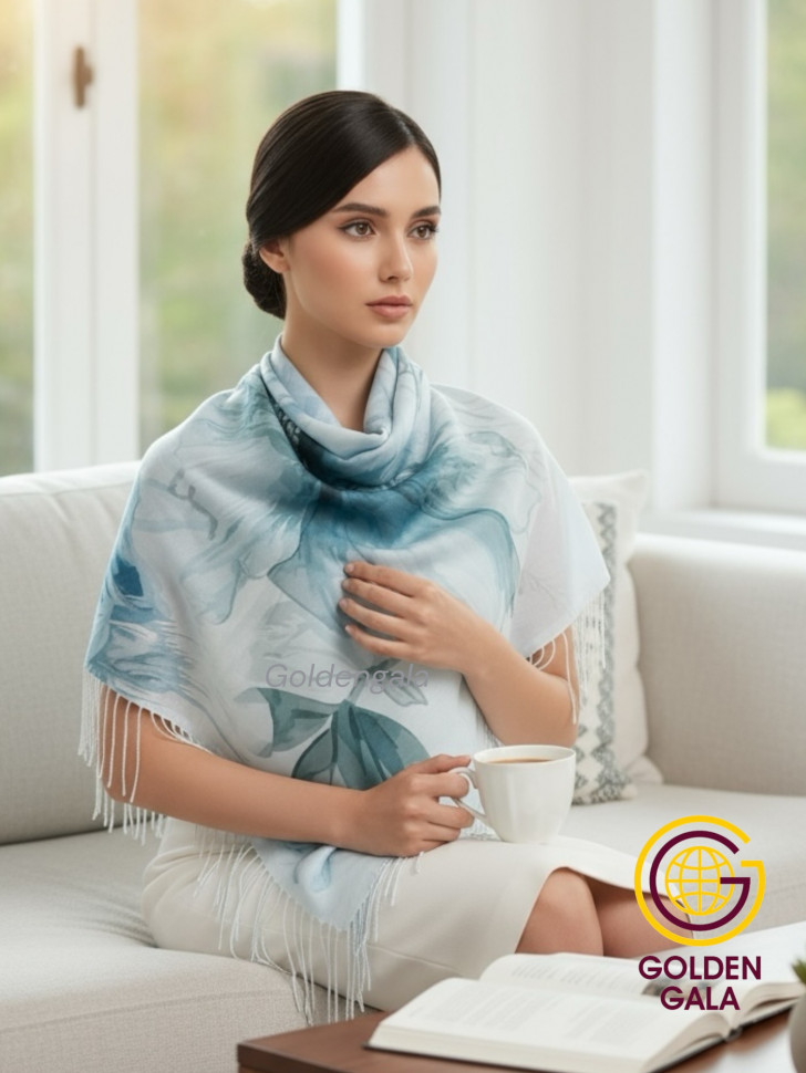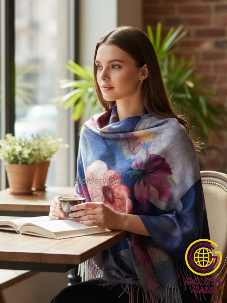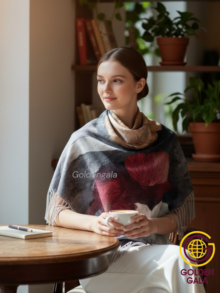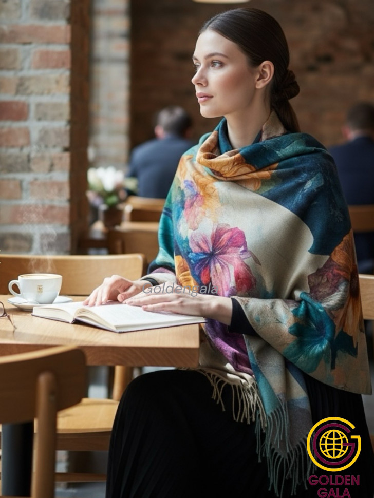 Платок теплый кашемировый с 3D принтом Арт 2591П/10 10 фото