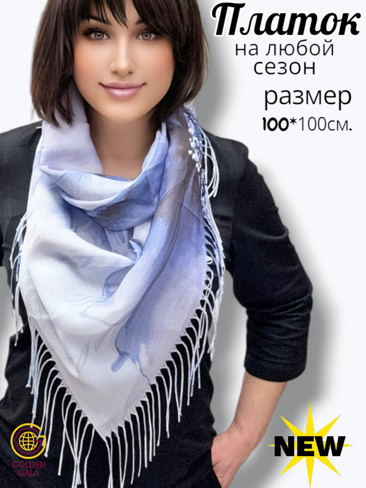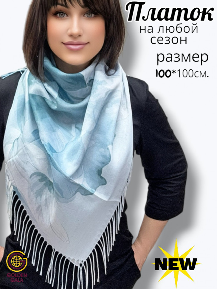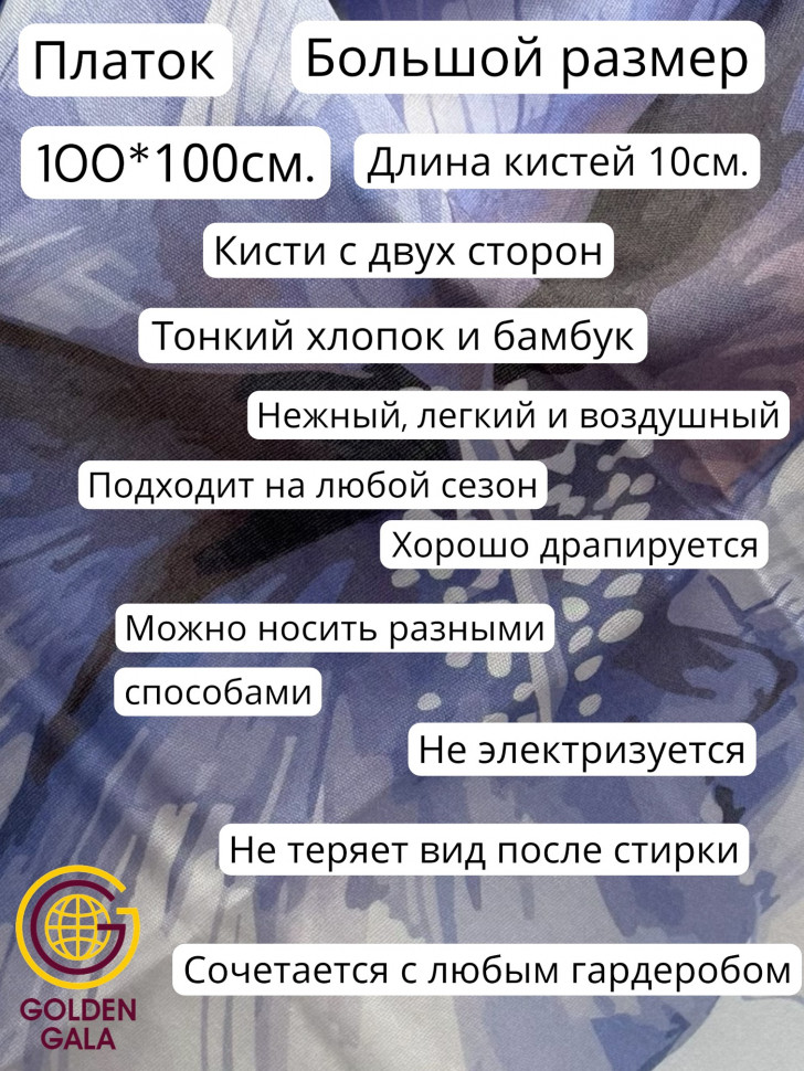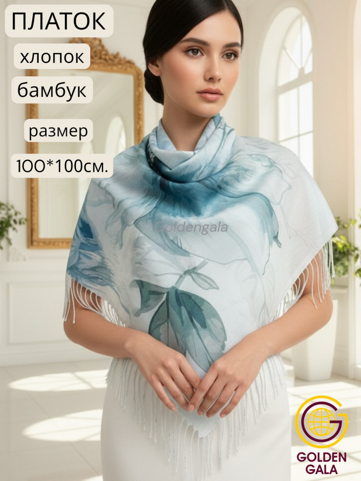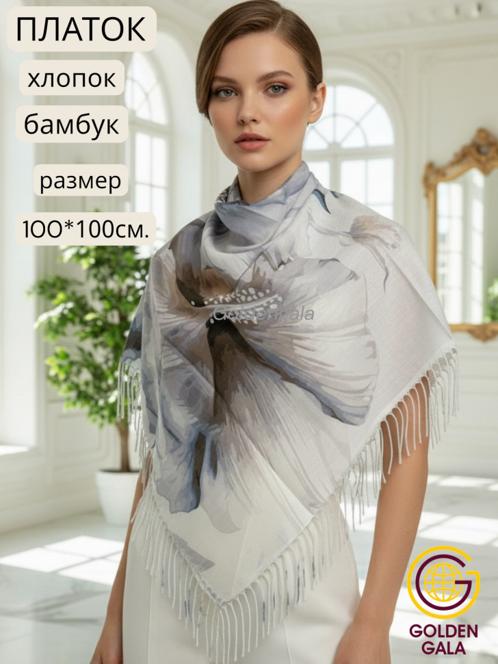 Платок с кистями цветочный принт 3D  Арт: С2512/10 10 фото