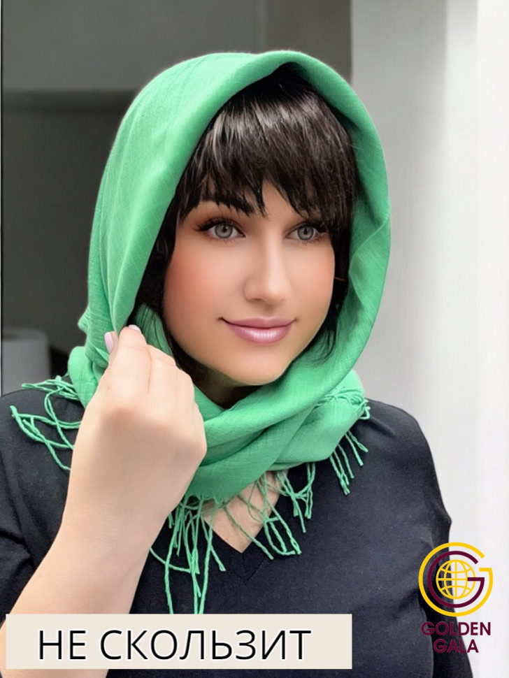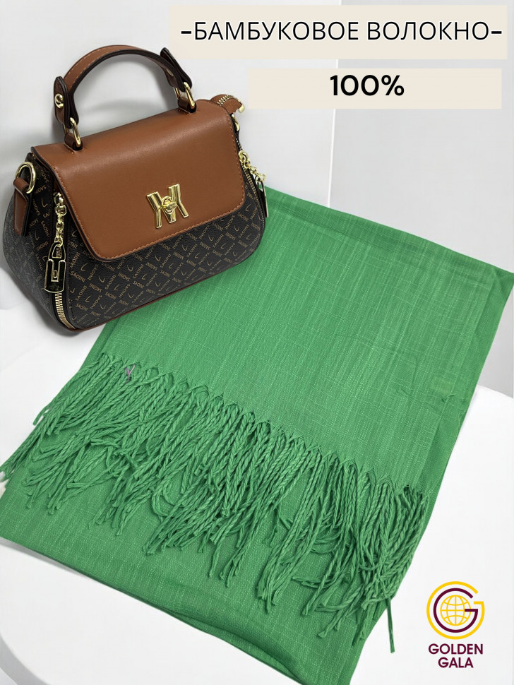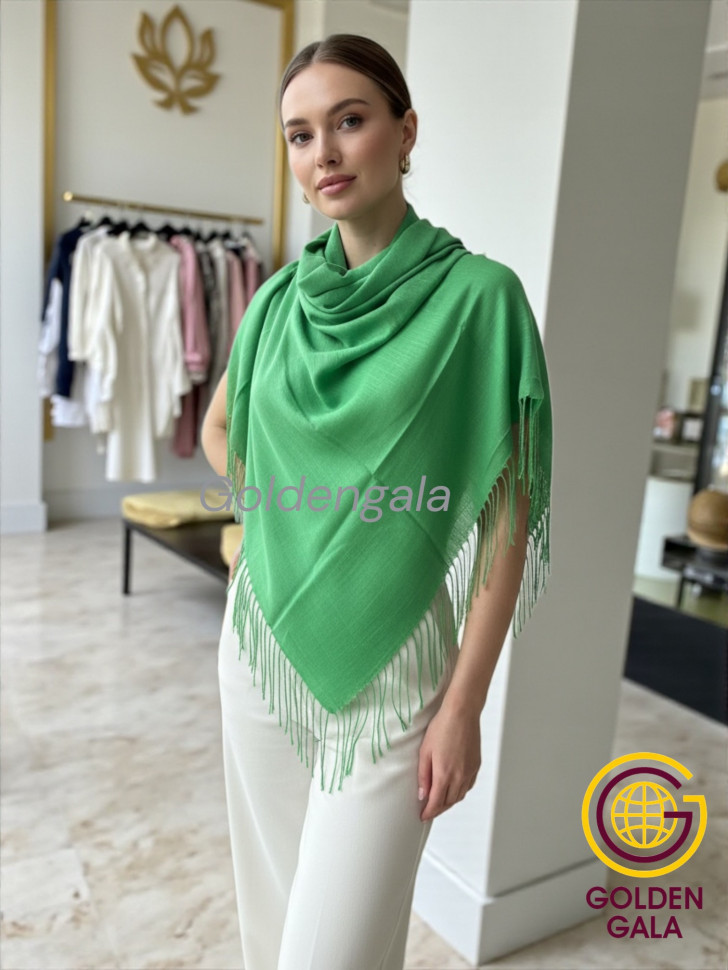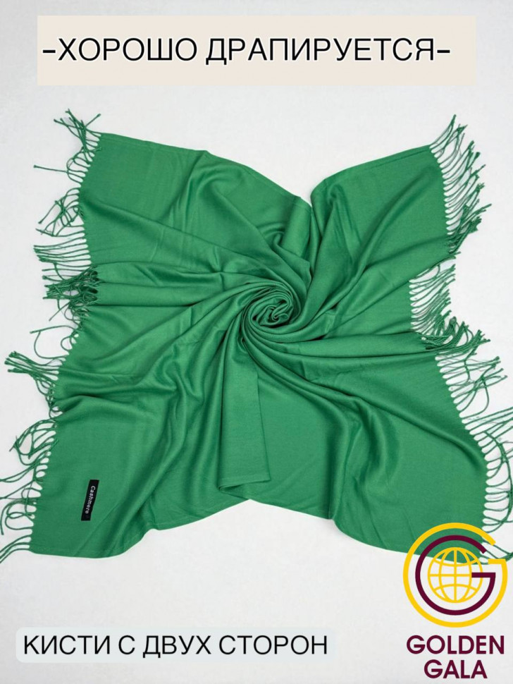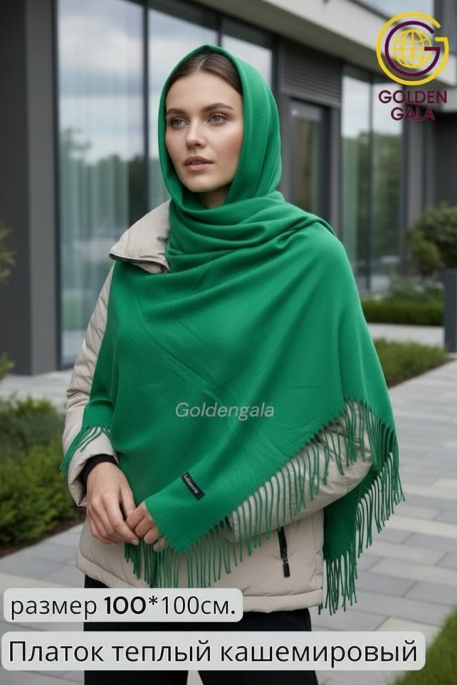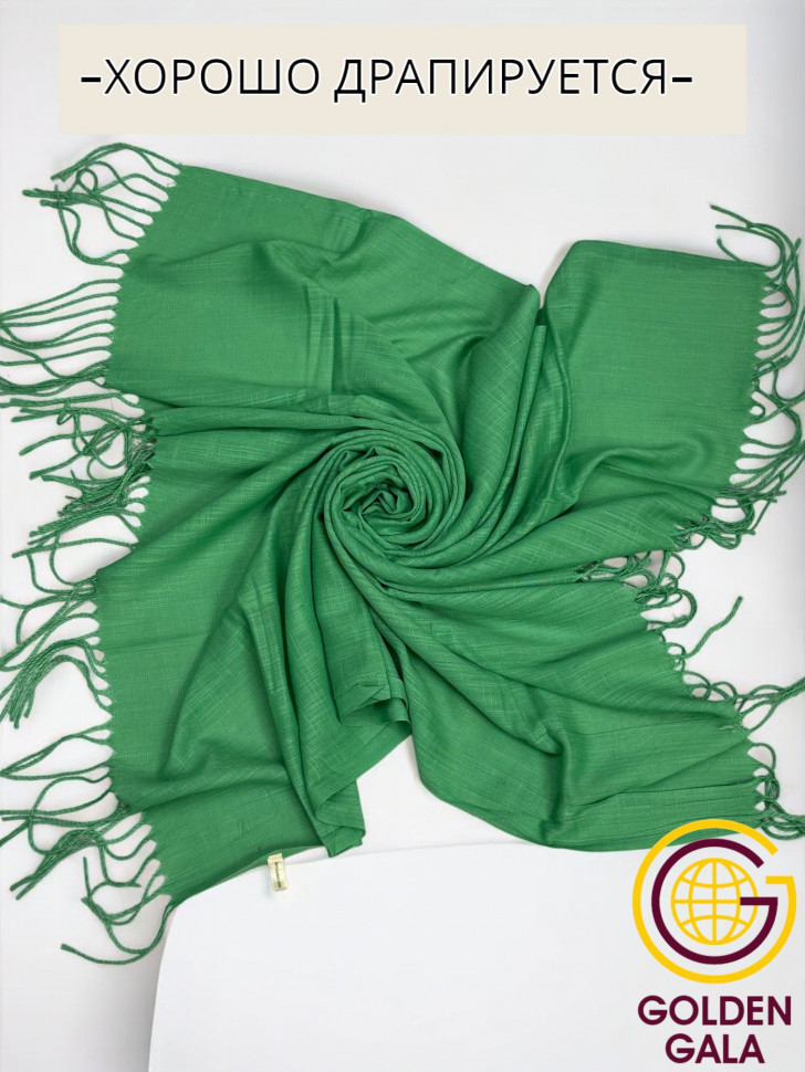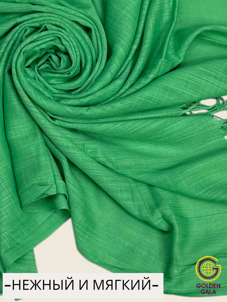 Платок теплый кашемировый однотонный Арт 9899П/8 цвет зеленая трава 10 фото