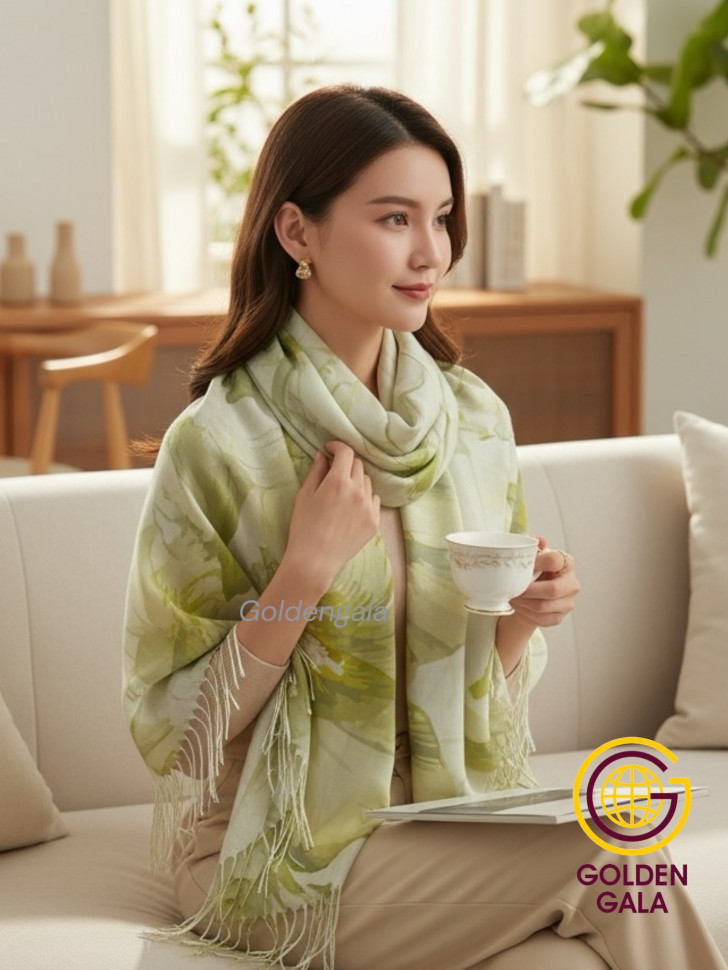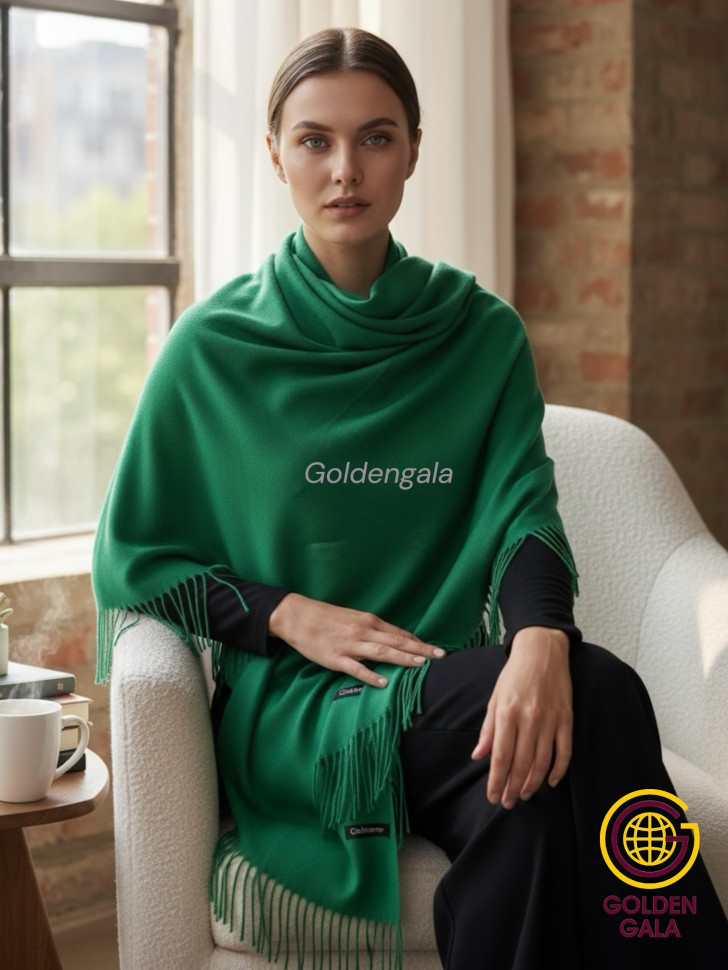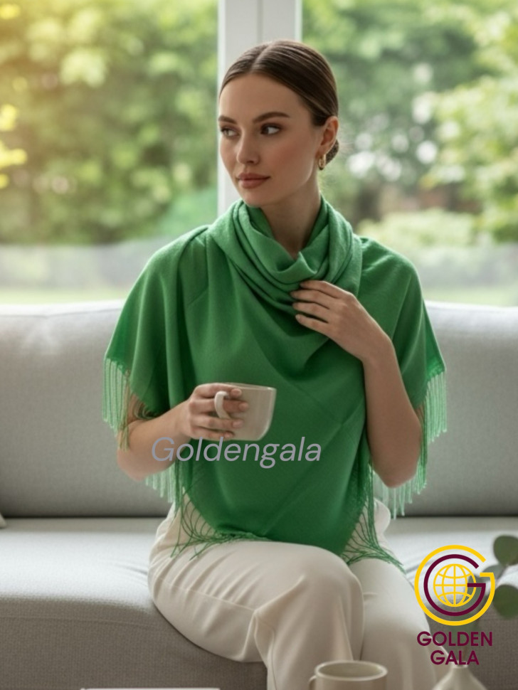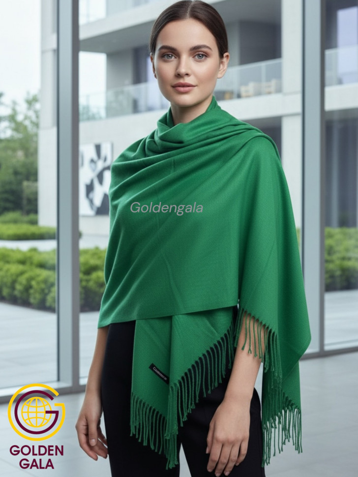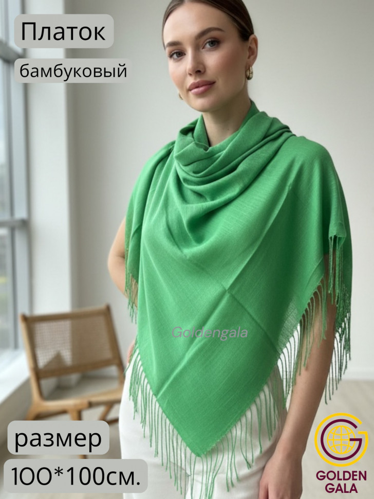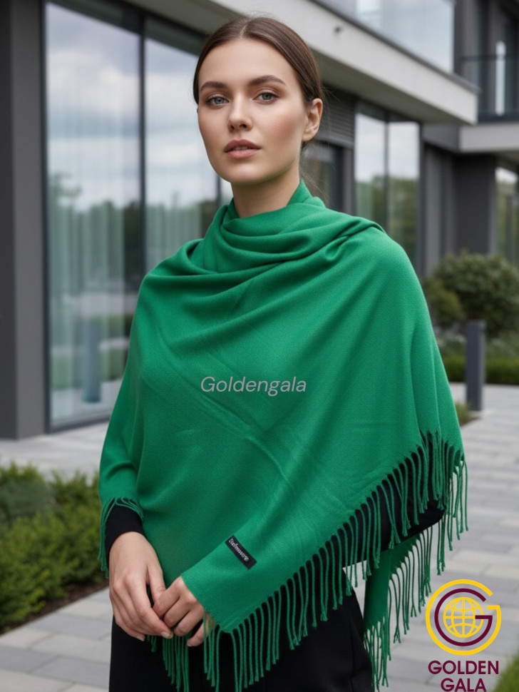 Платок теплый кашемировый однотонный Арт 9899П/8 цвет зеленая трава 10 фото