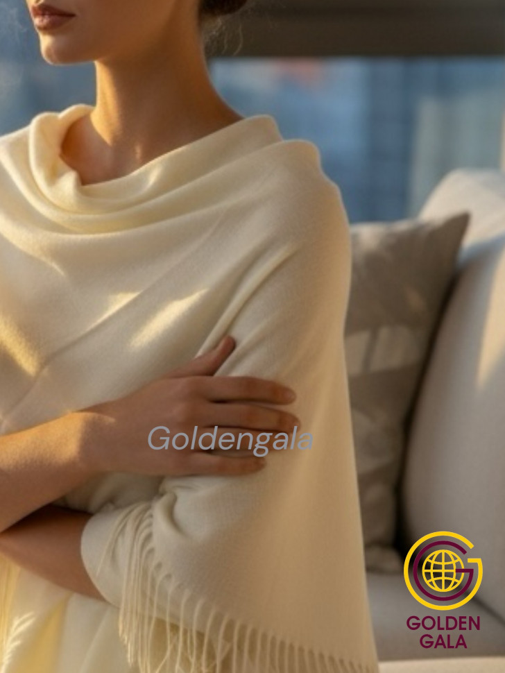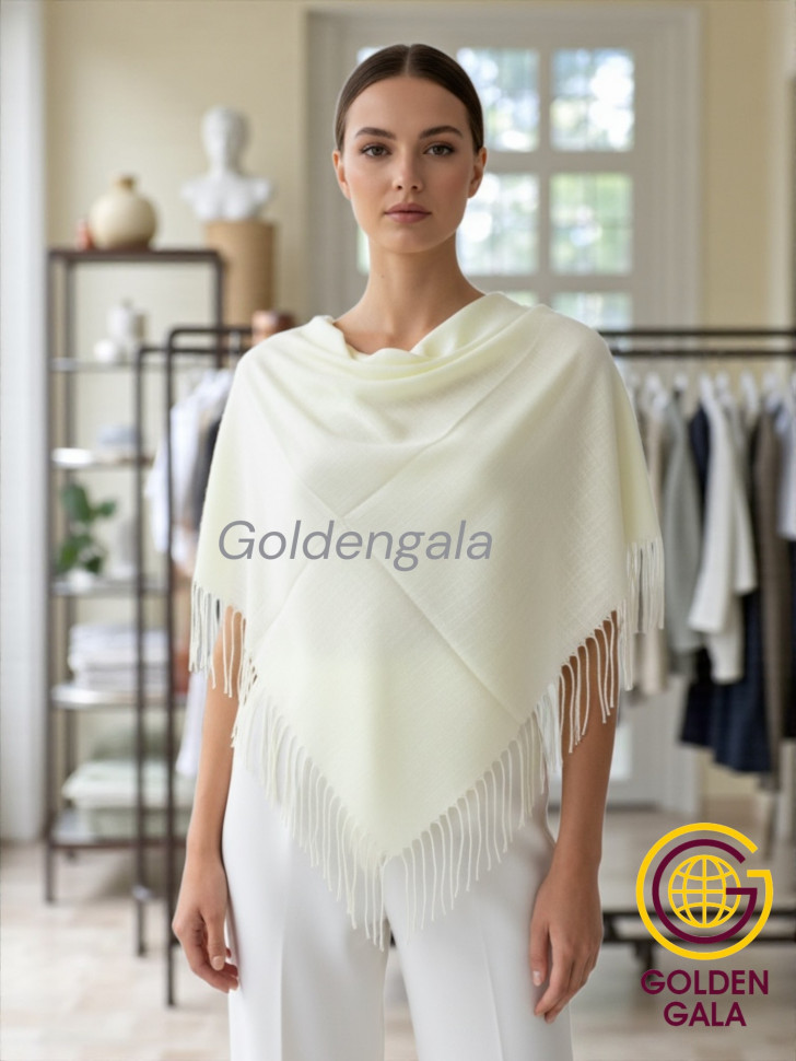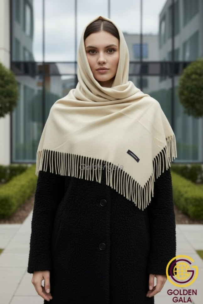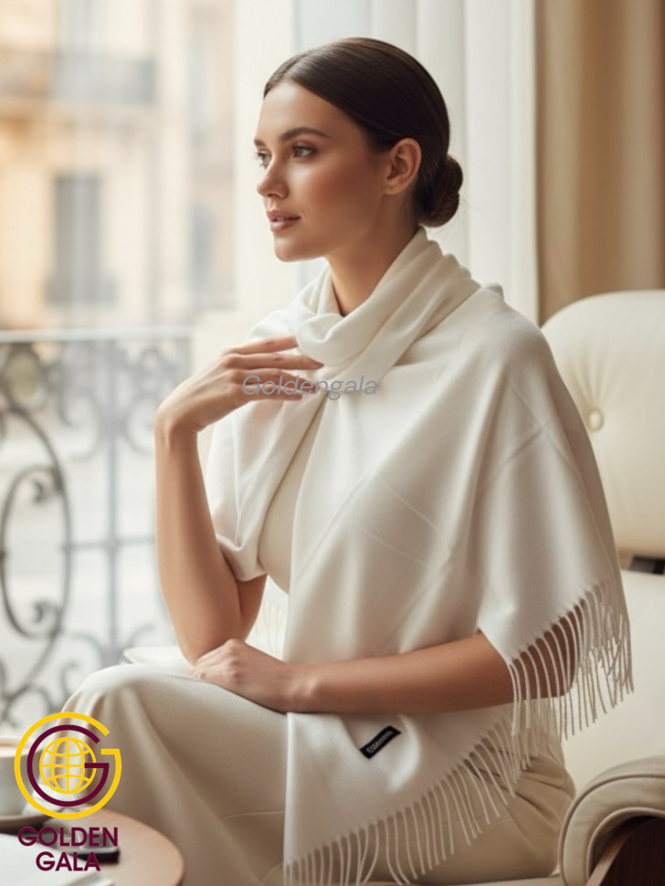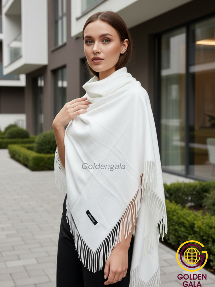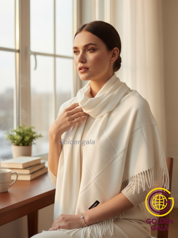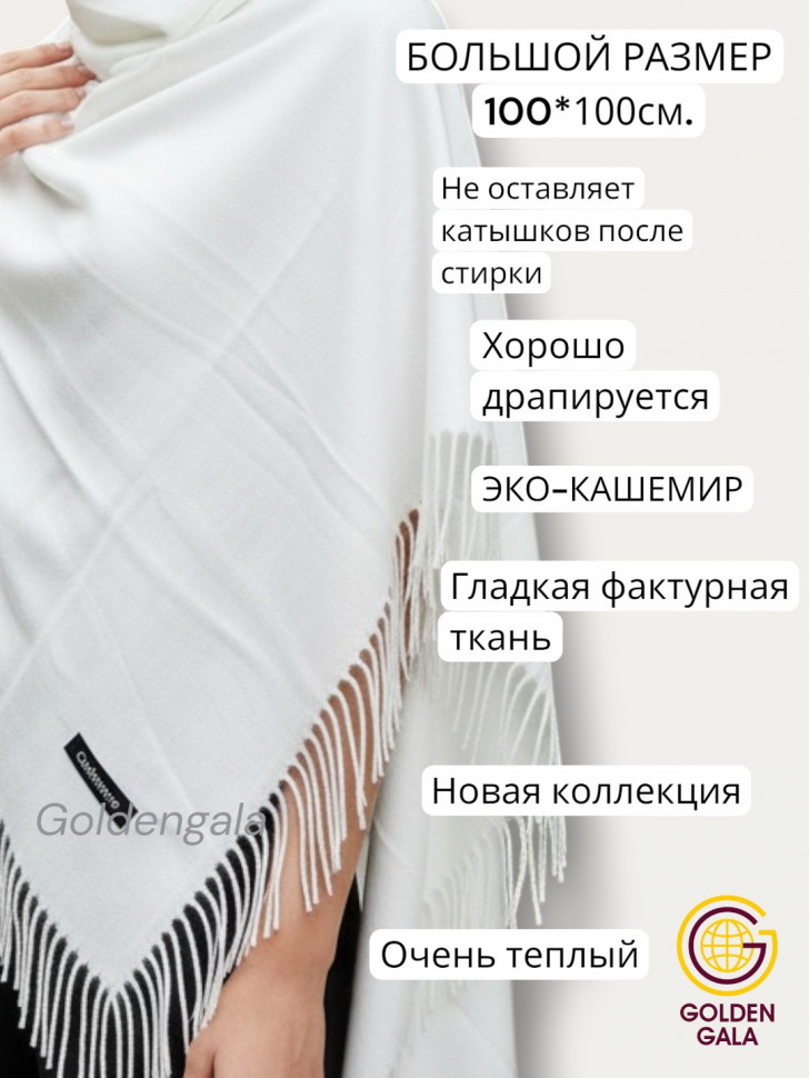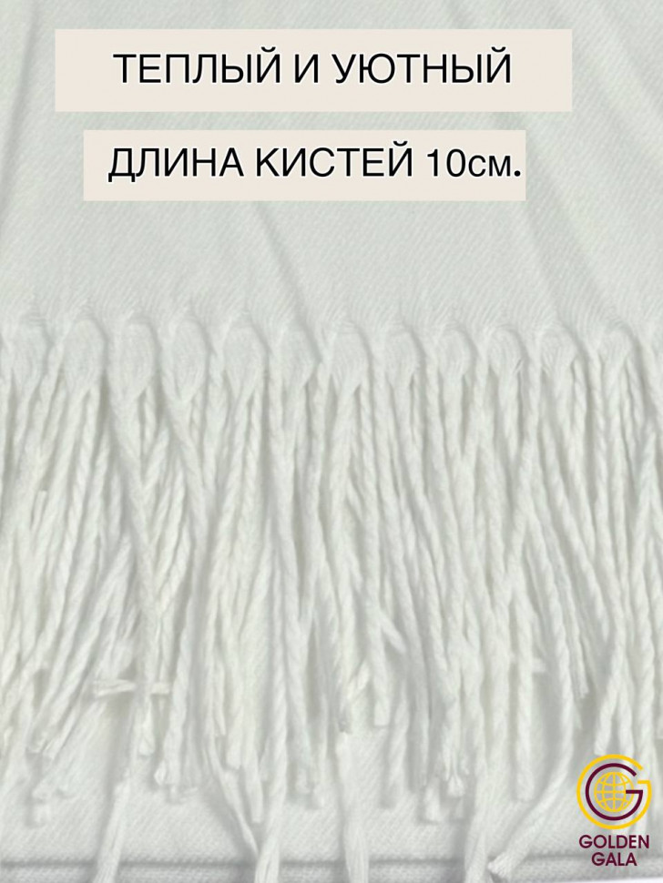 Платок теплый кашемировый однотонный Арт 9899П/39 цвет белый 10 фото