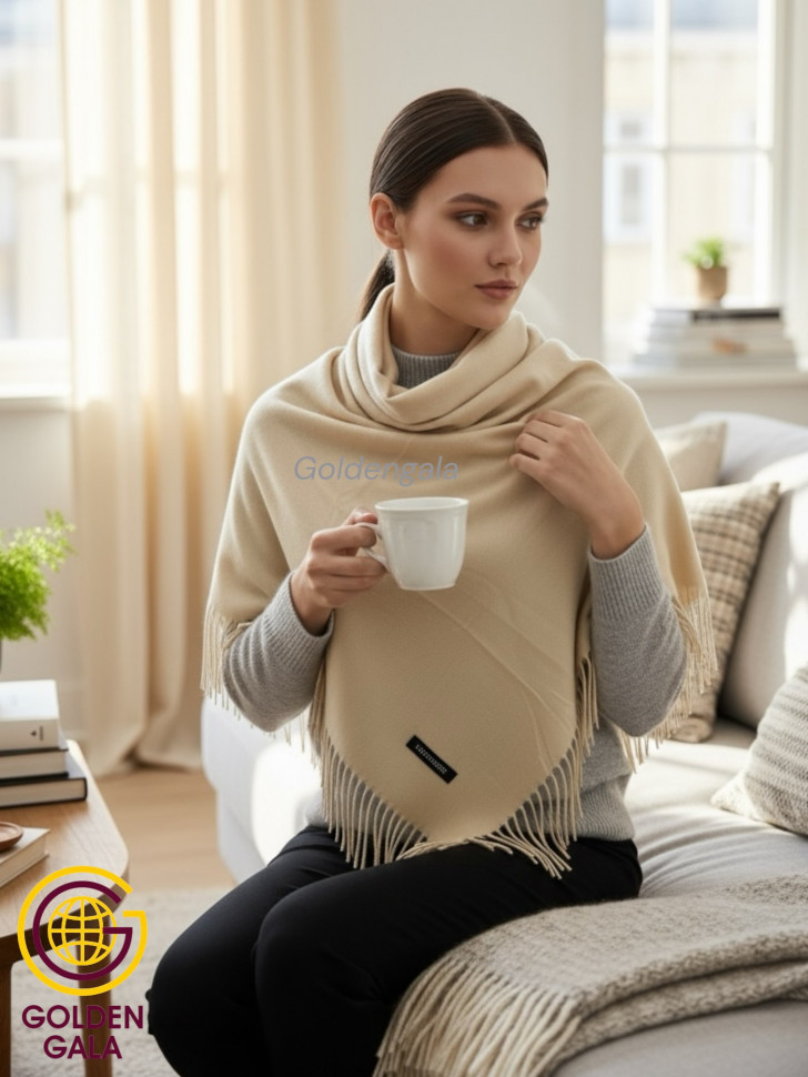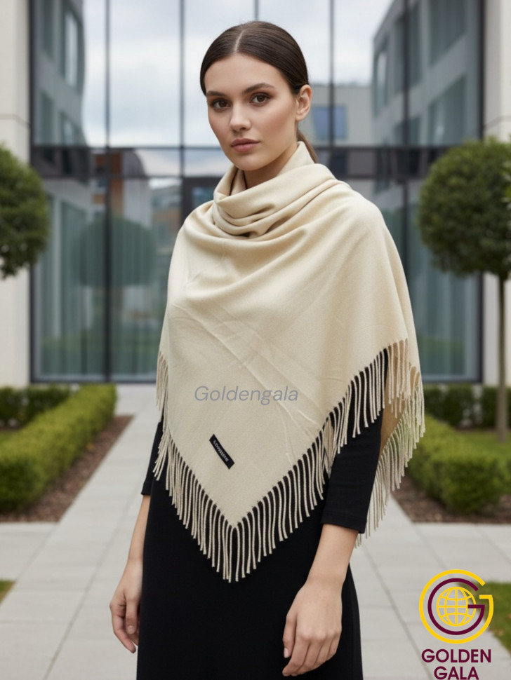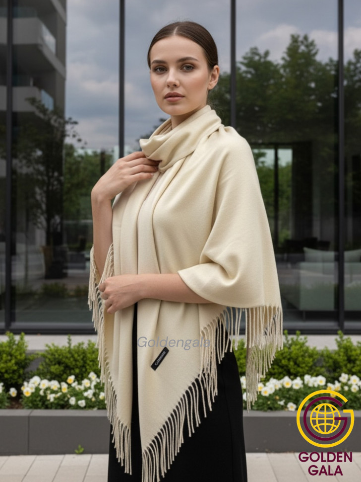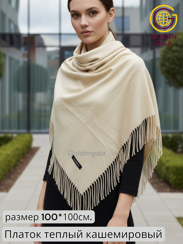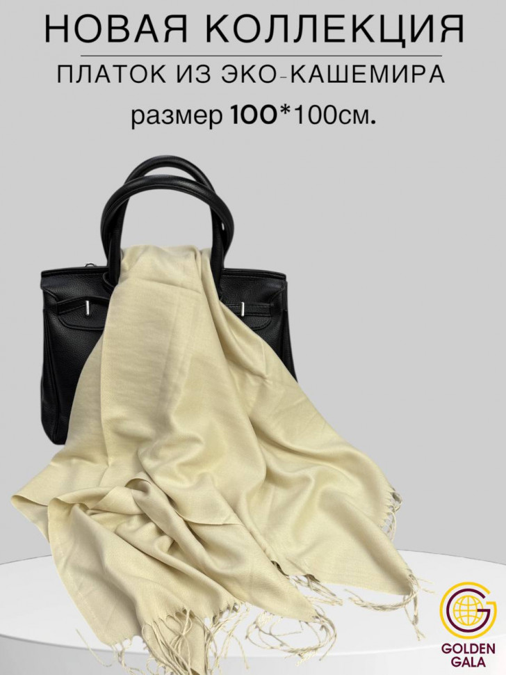 Платок теплый кашемировый однотонный Арт 9899П/41 цвет бежево-песочный 10 фото
