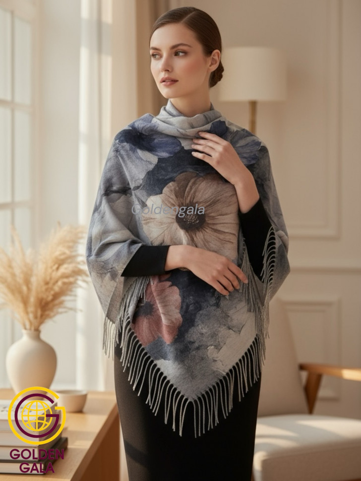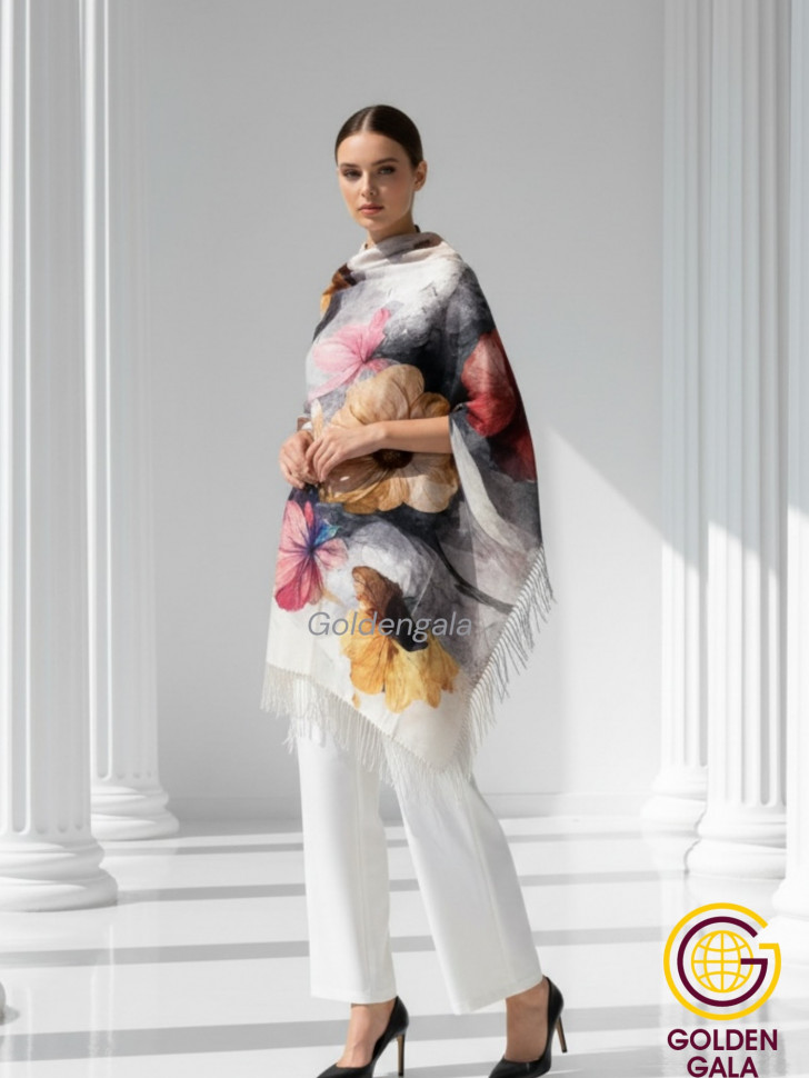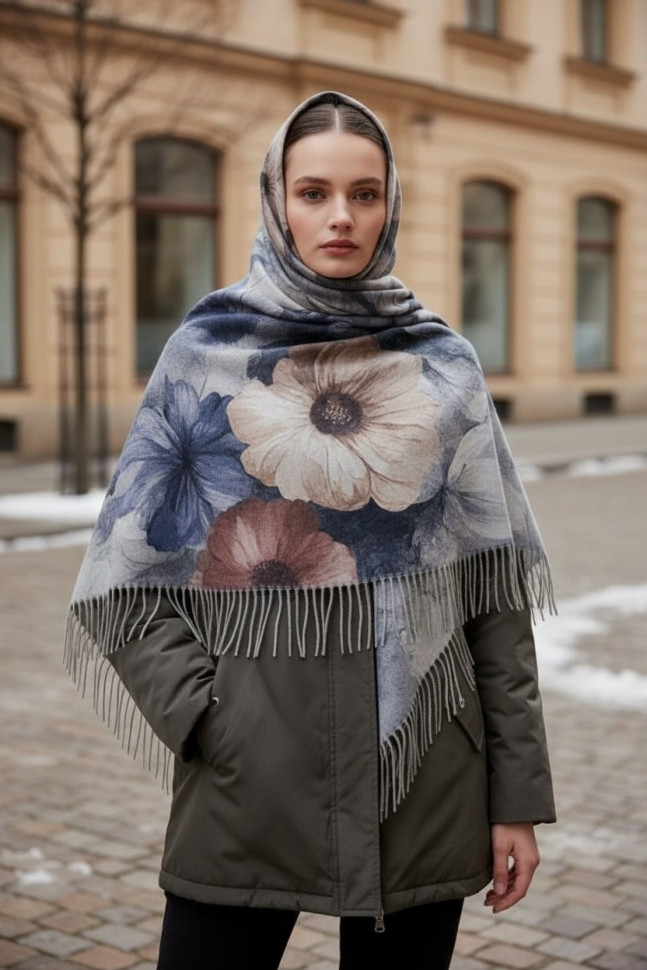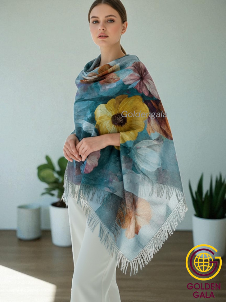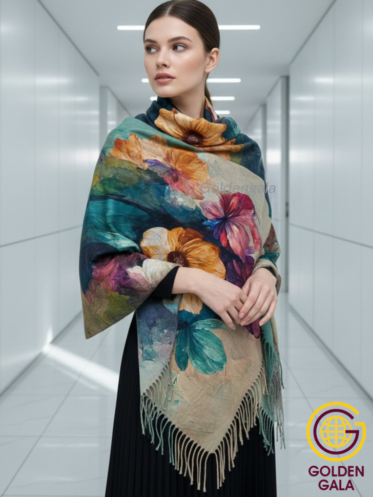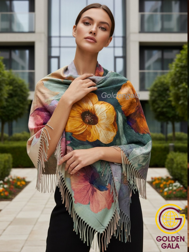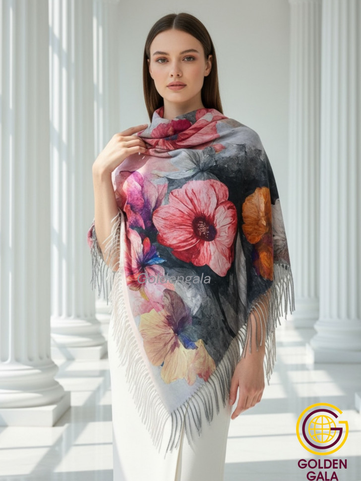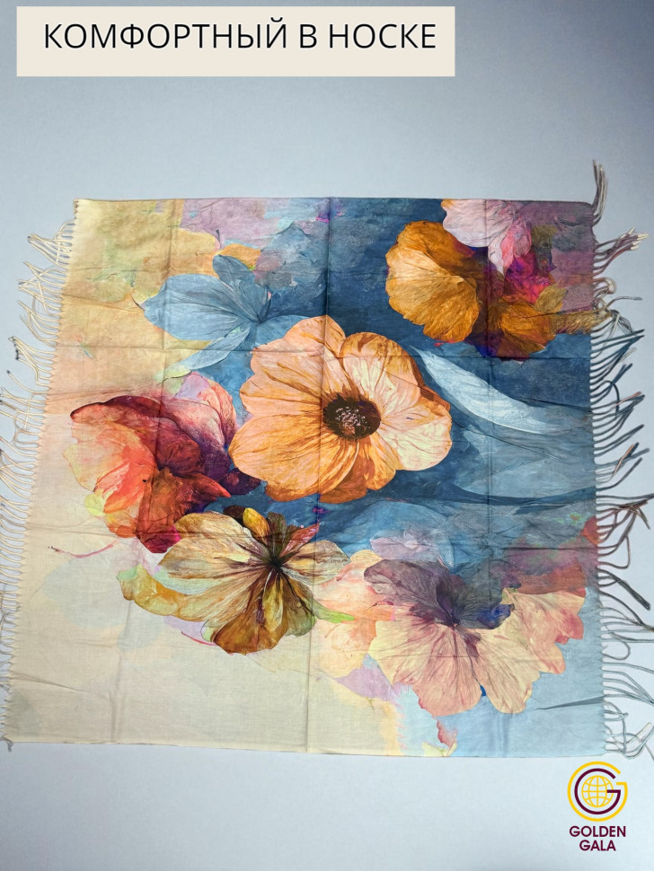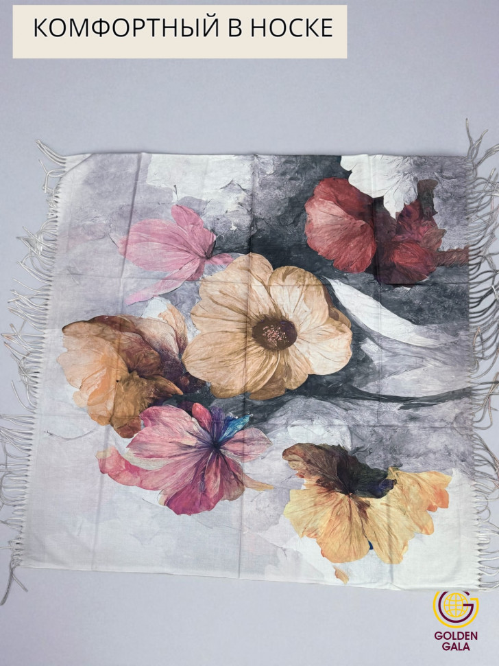 Платок с кистями цветочный принт 3D  Арт: С2512/02 10 фото