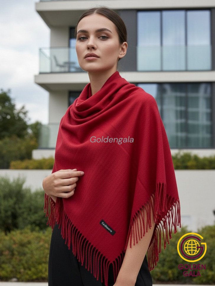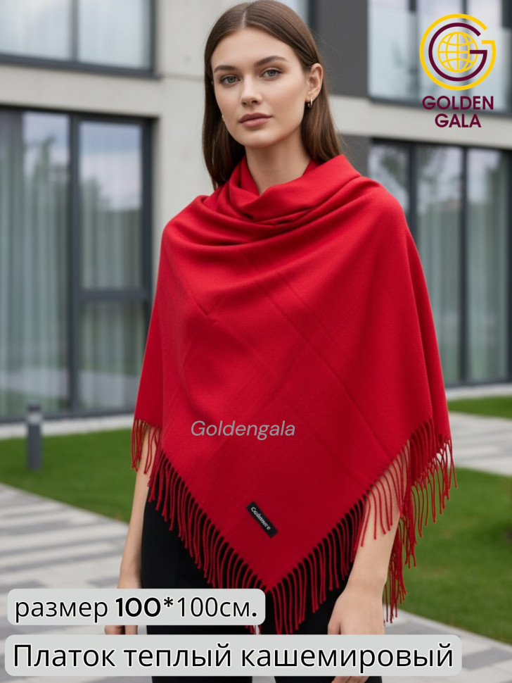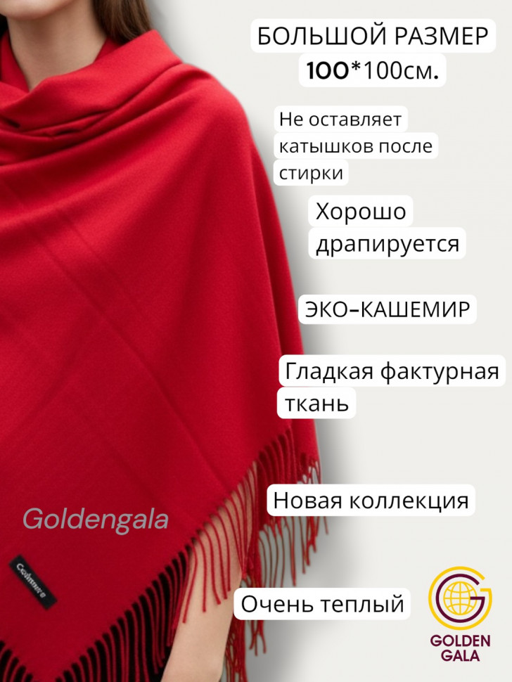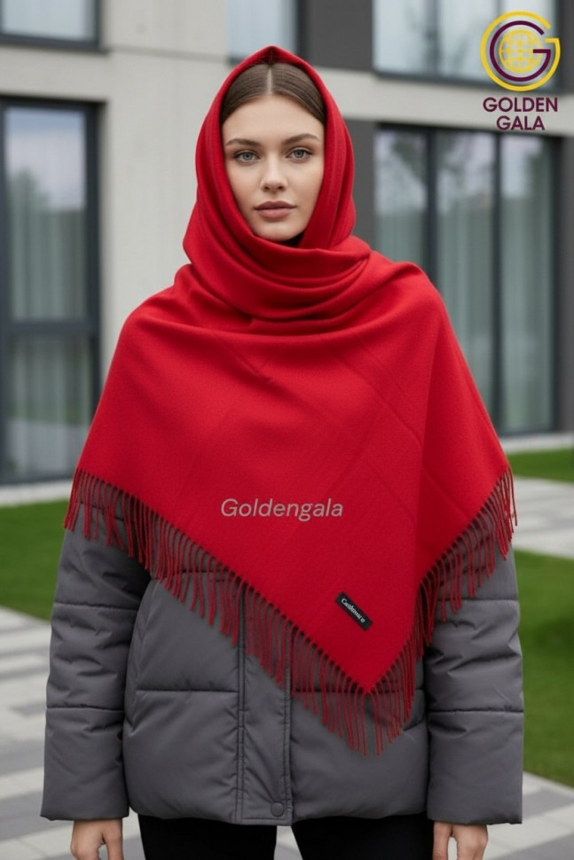 Платок теплый кашемировый однотонный Арт 9899П/4 цвет красный бархат 10 фото