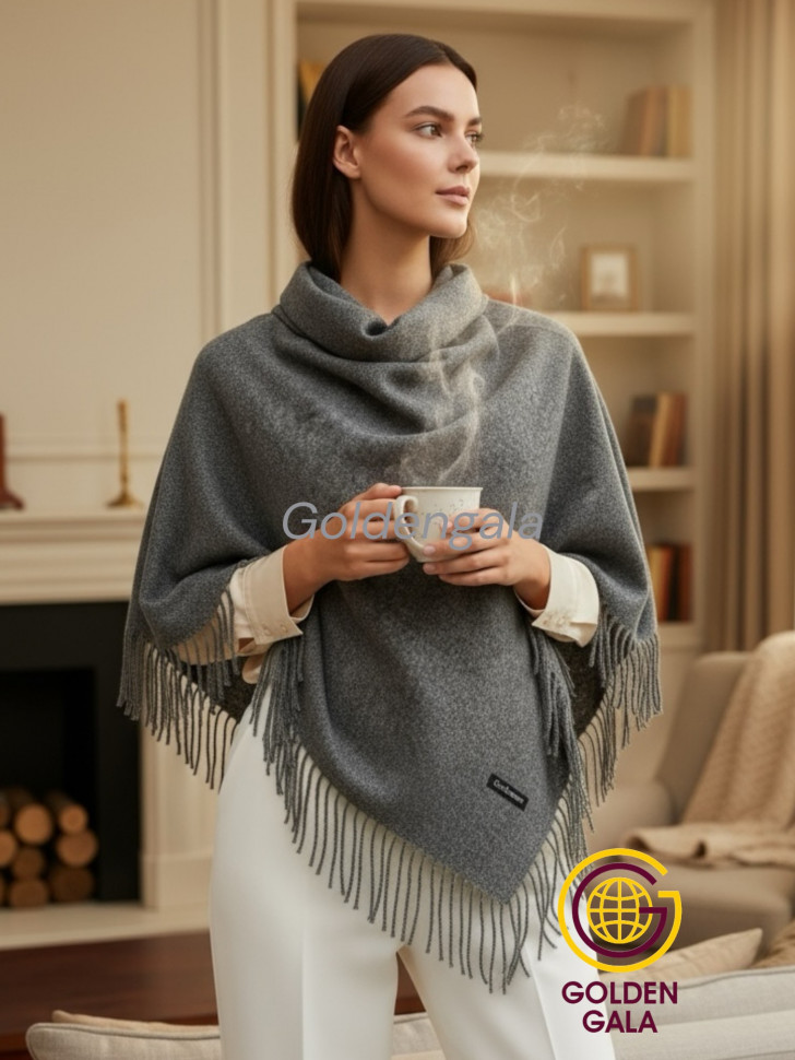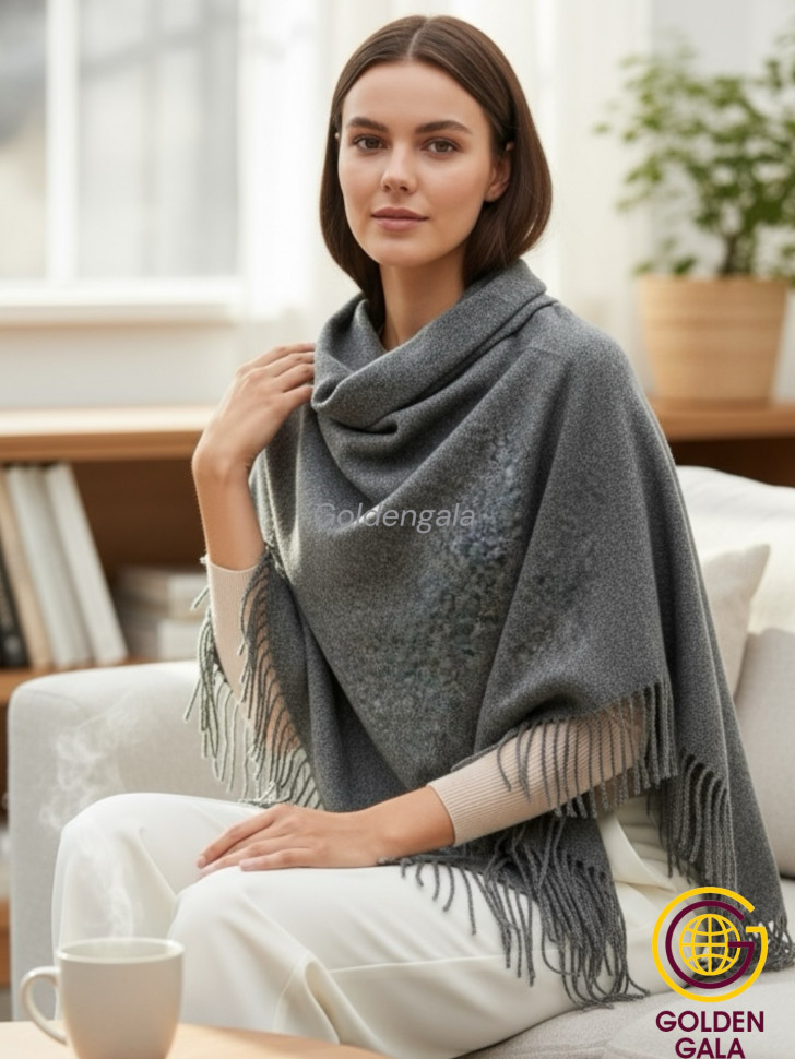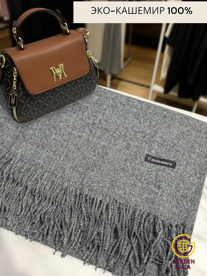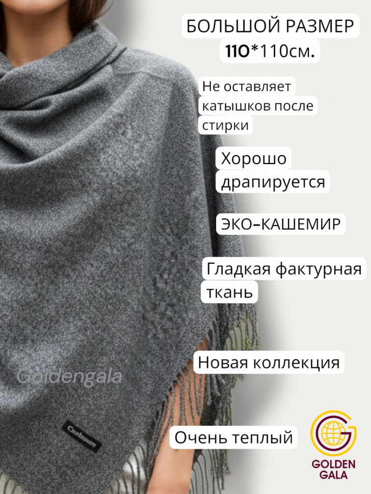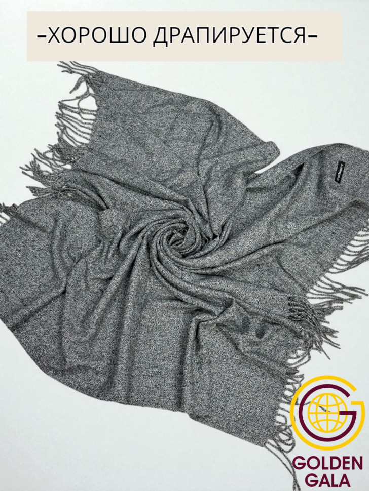 Платок теплый кашемировый однотонный (Меланж) Арт 9039/10 темно-серый 10 фото