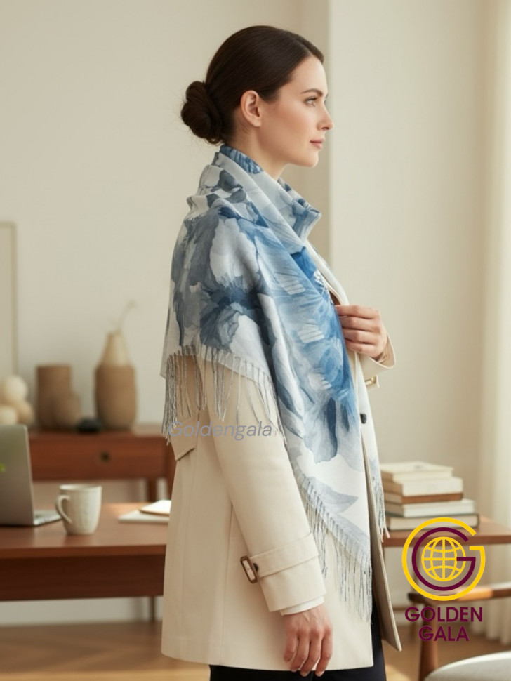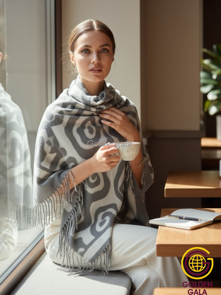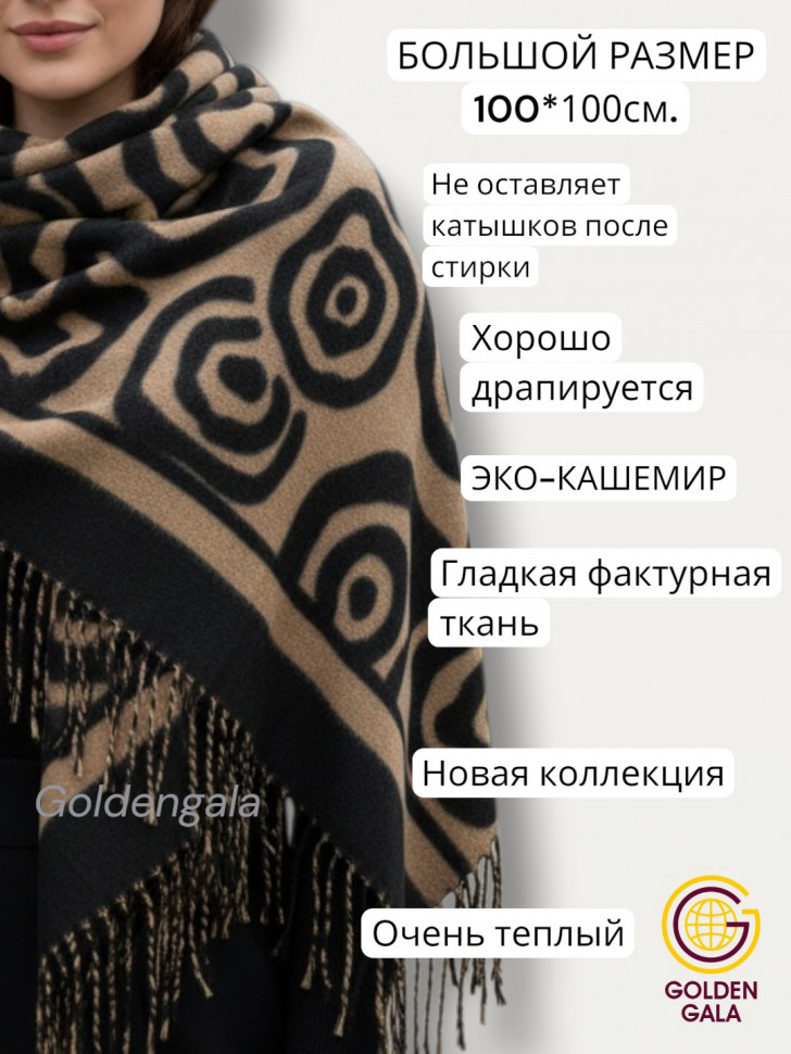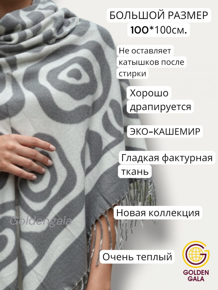 Платок теплый кашемировый с 3D принтом Арт 2591П/05 10 фото