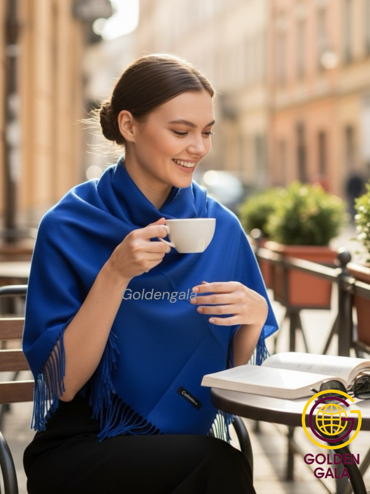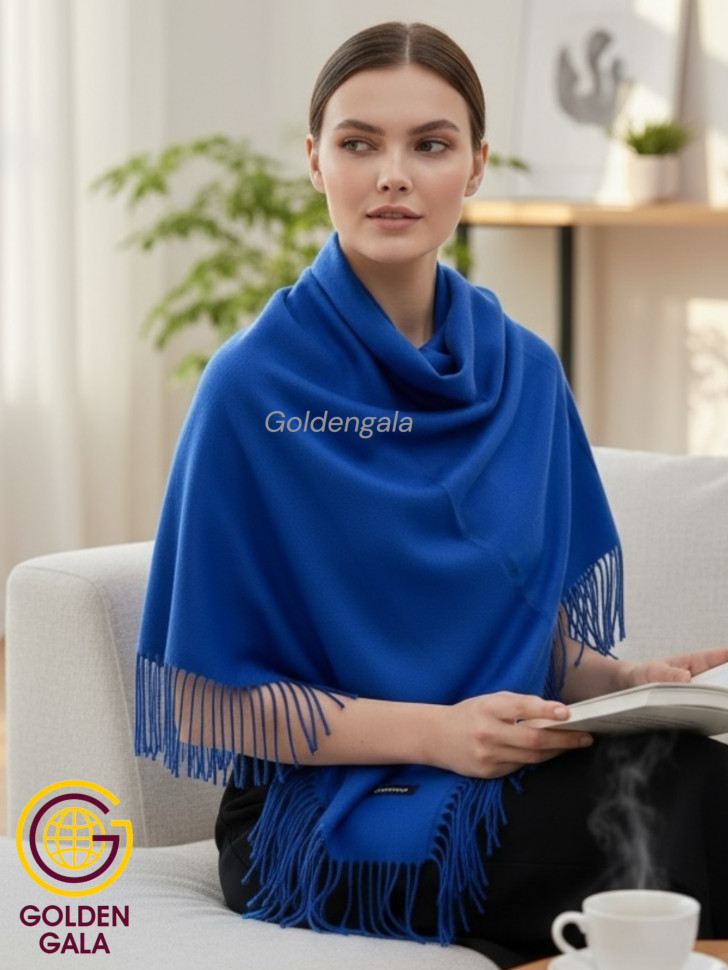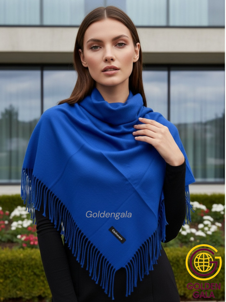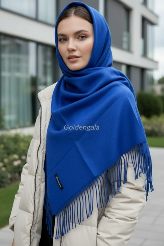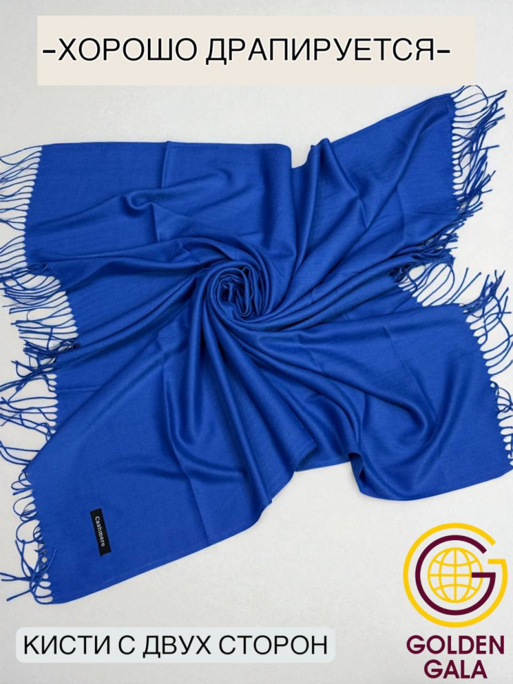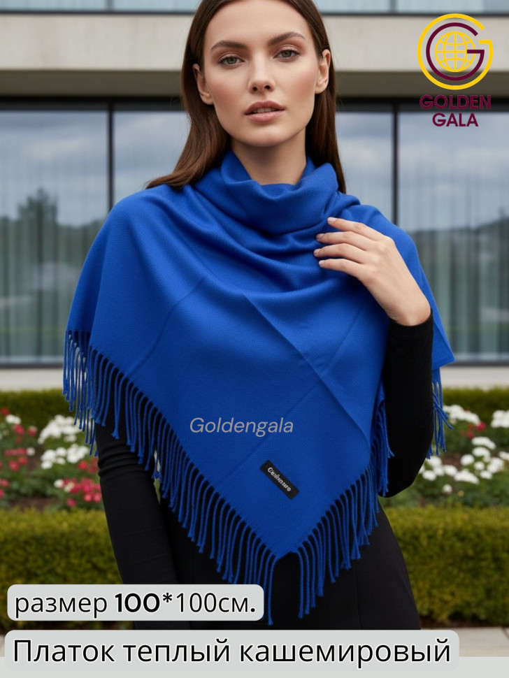 Платок теплый кашемировый однотонный Арт 9899П/38 цвет ярко-синий 10 фото