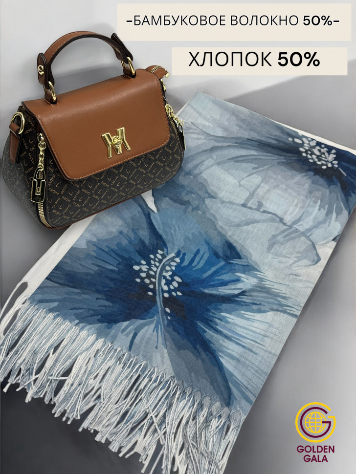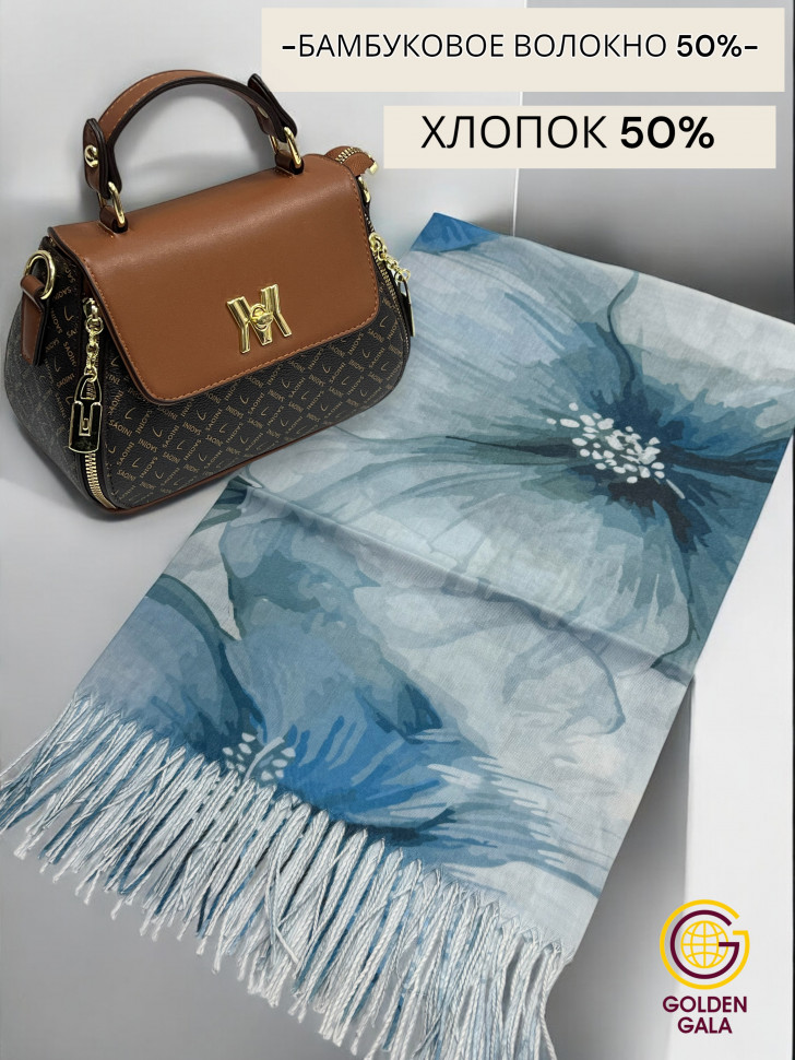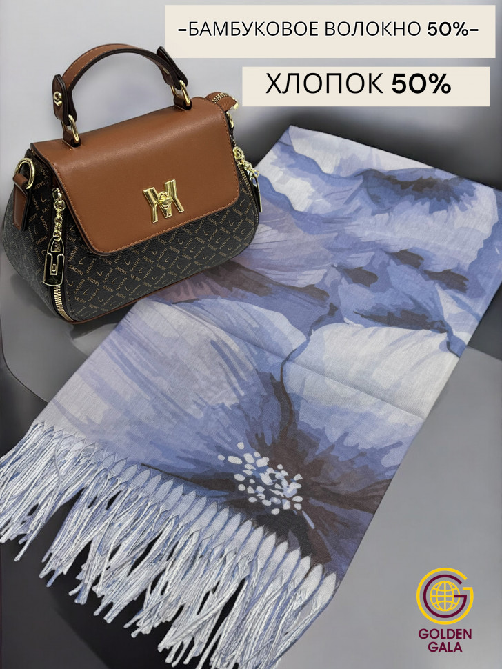 Платок с кистями цветочный принт 3D  Арт: С2512/05 10 фото