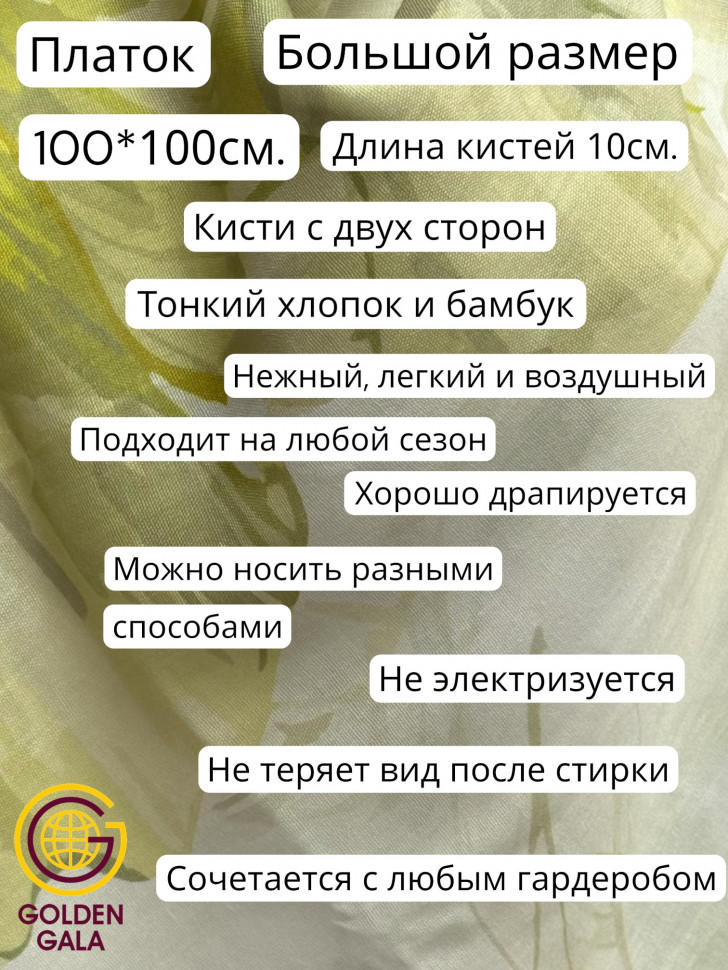 Платок с кистями цветочный принт 3D  Арт: С2512/04 10 фото