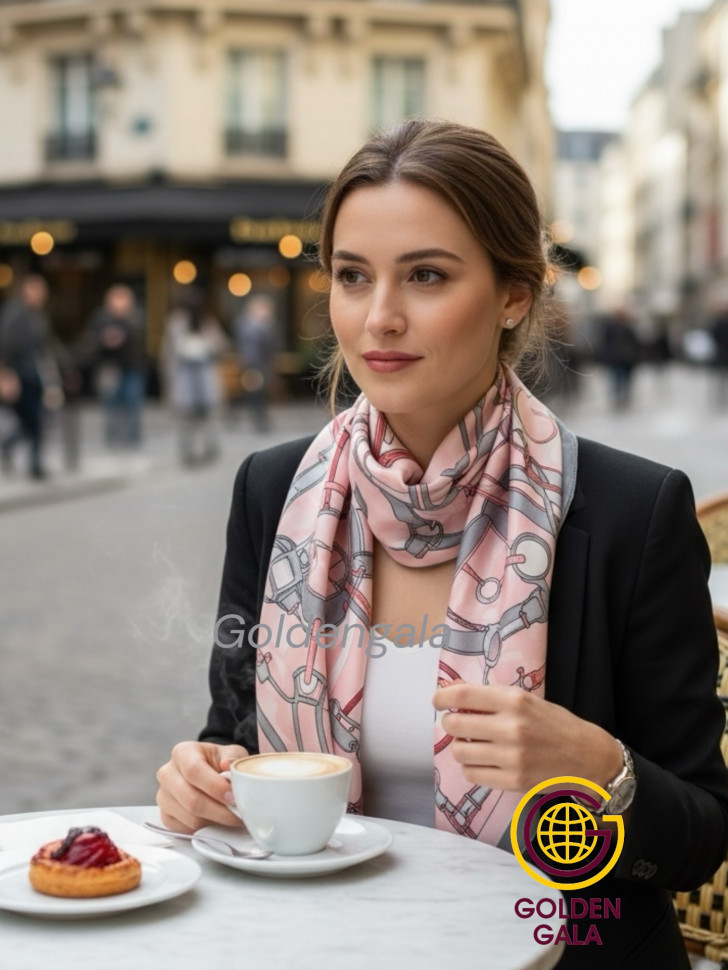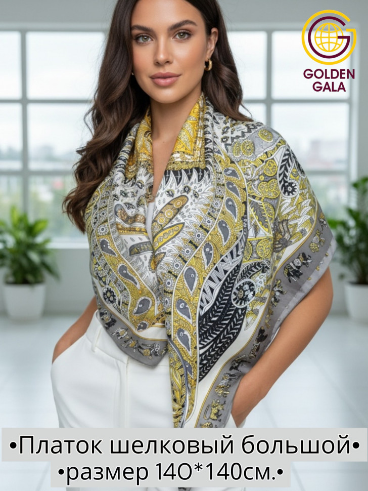 Платок шелковый большой "Парижанка" Арт 2428/53 10 фото