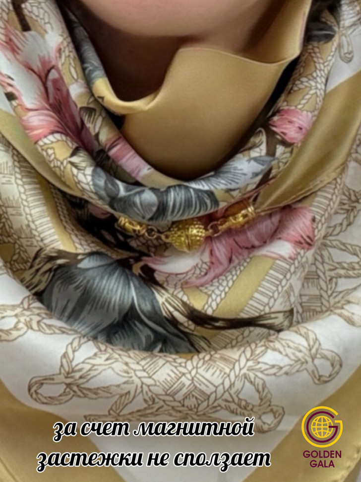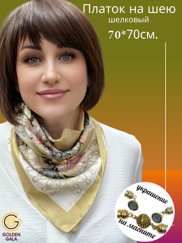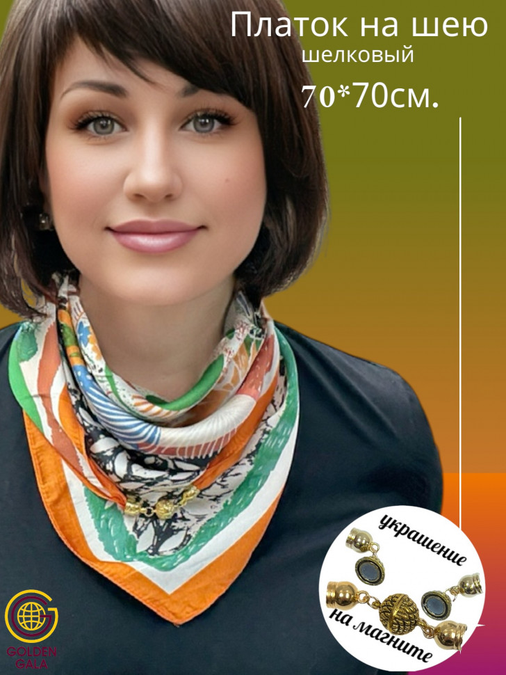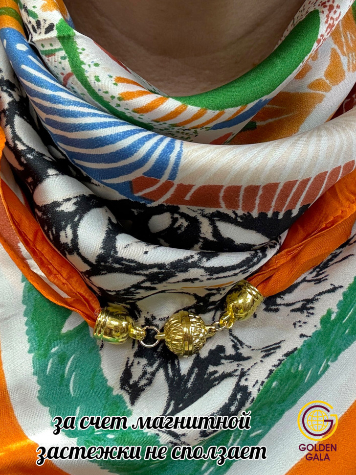 Платок на шею с украшением шелковый Арт 2530/10 10 фото