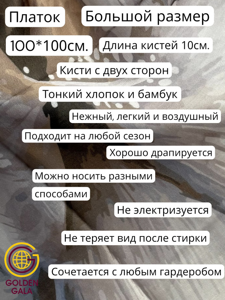 Платок теплый кашемировый с 3D принтом Арт 2591П/03 10 фото