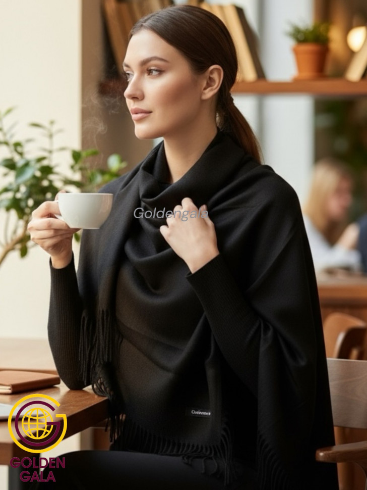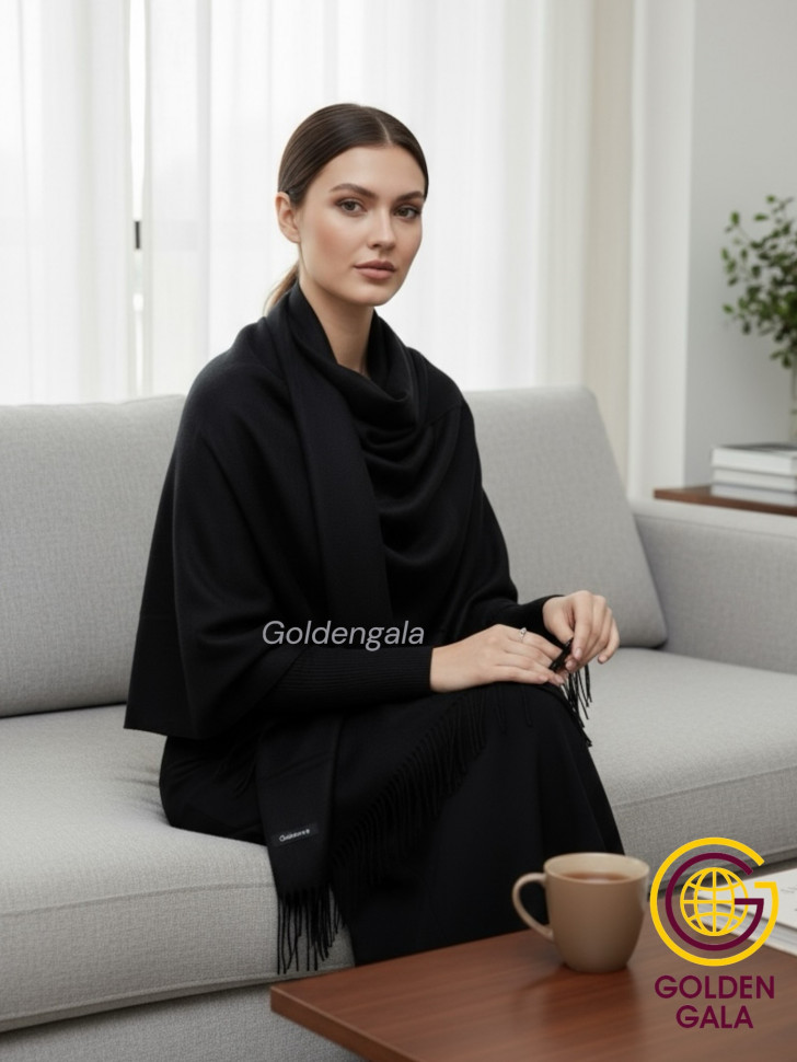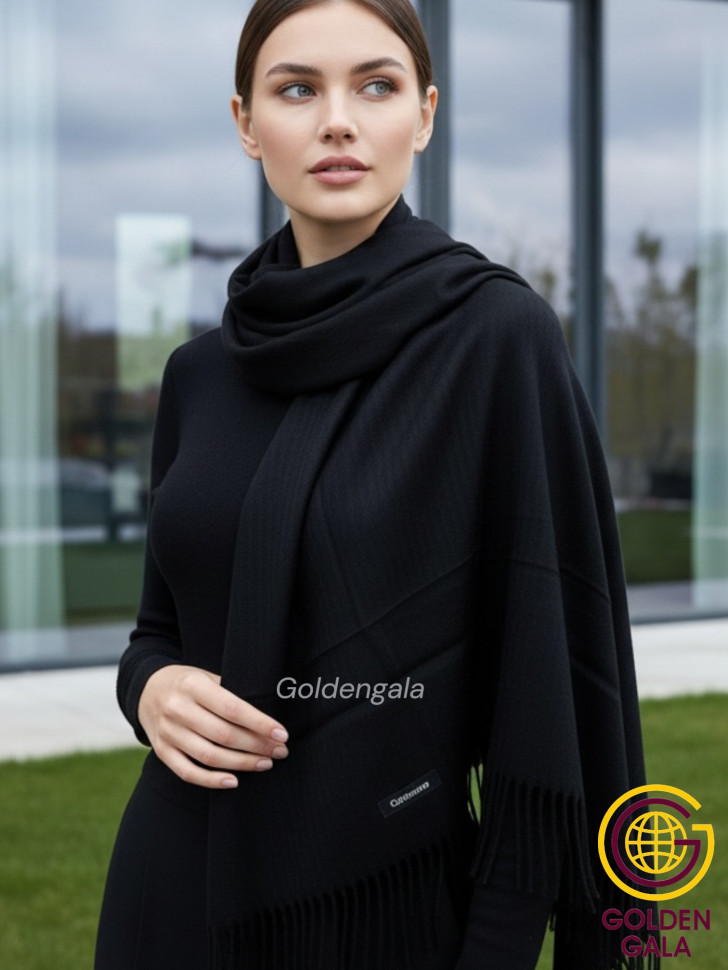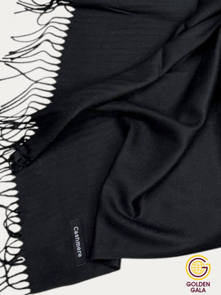 Платок теплый кашемировый однотонный Арт 9899П/34 цвет черный 10 фото