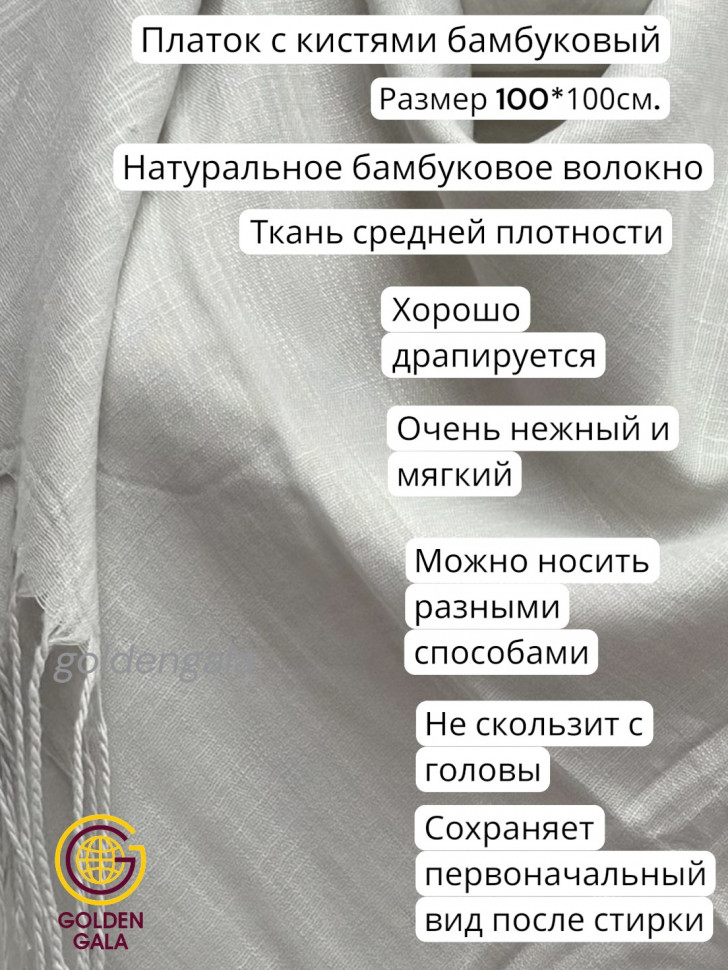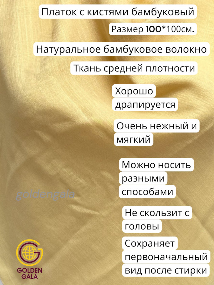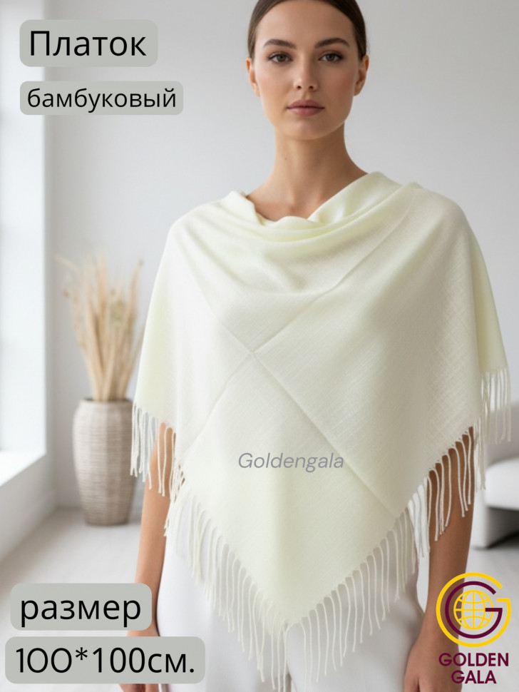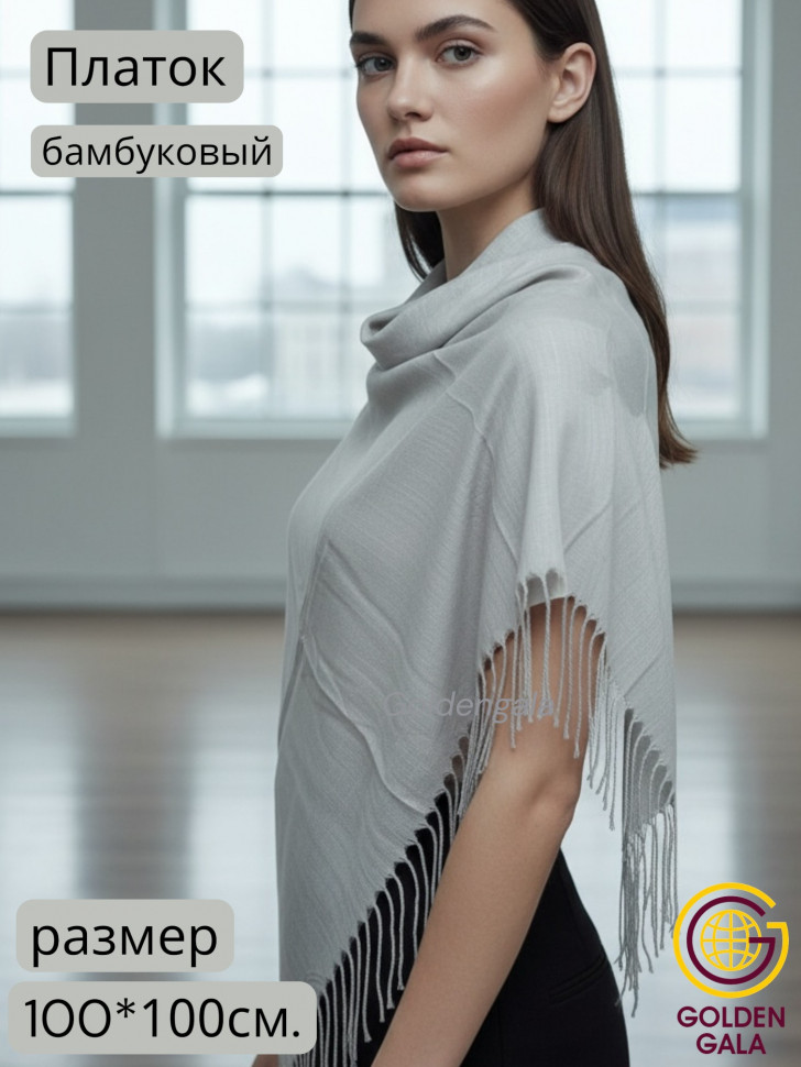 Платок с кистями однотонный Арт: В749/03 10 фото