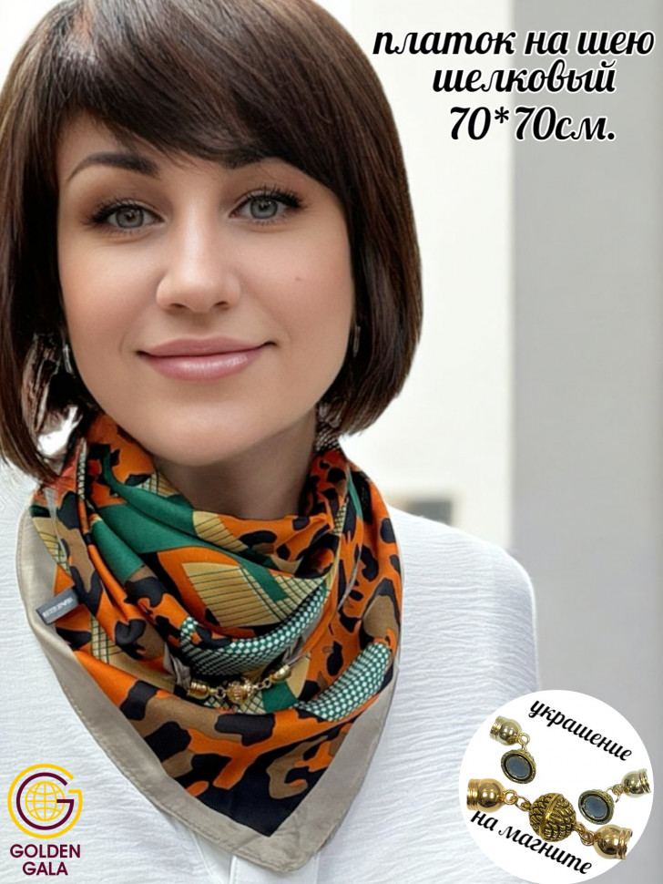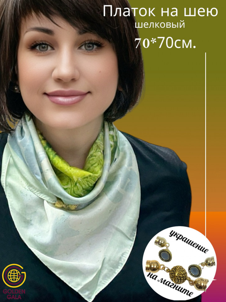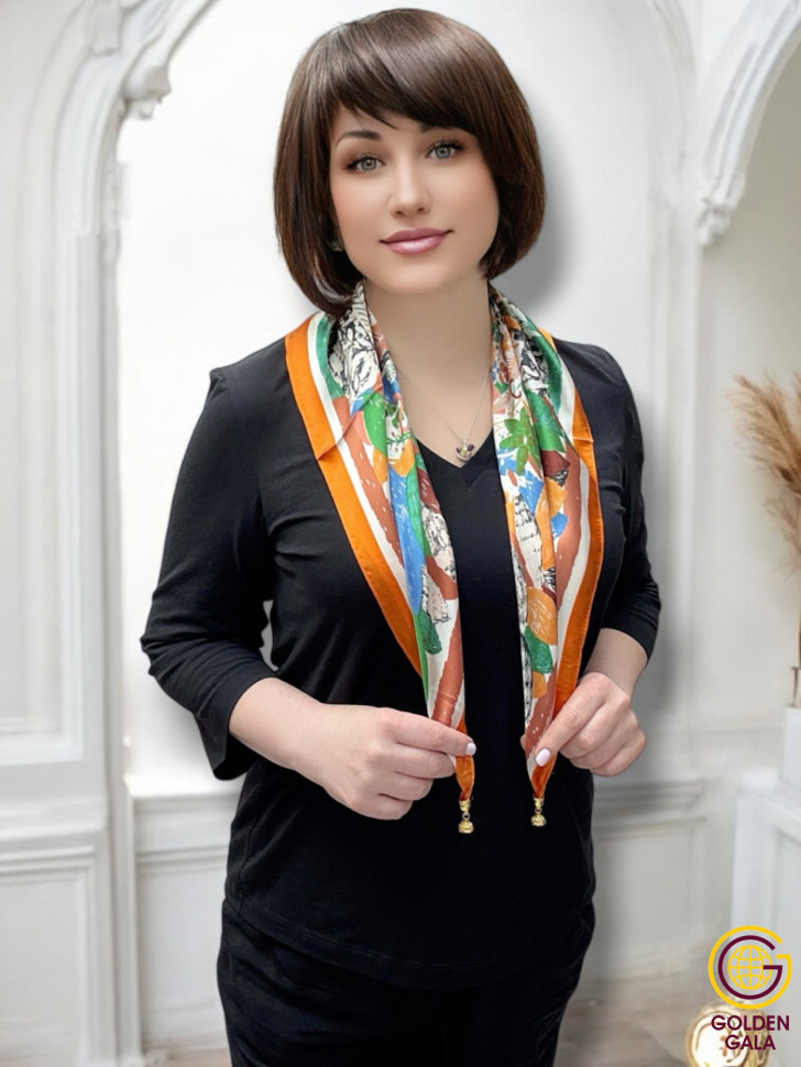 Платок на шею с украшением шелковый Арт 2530/07 10 фото